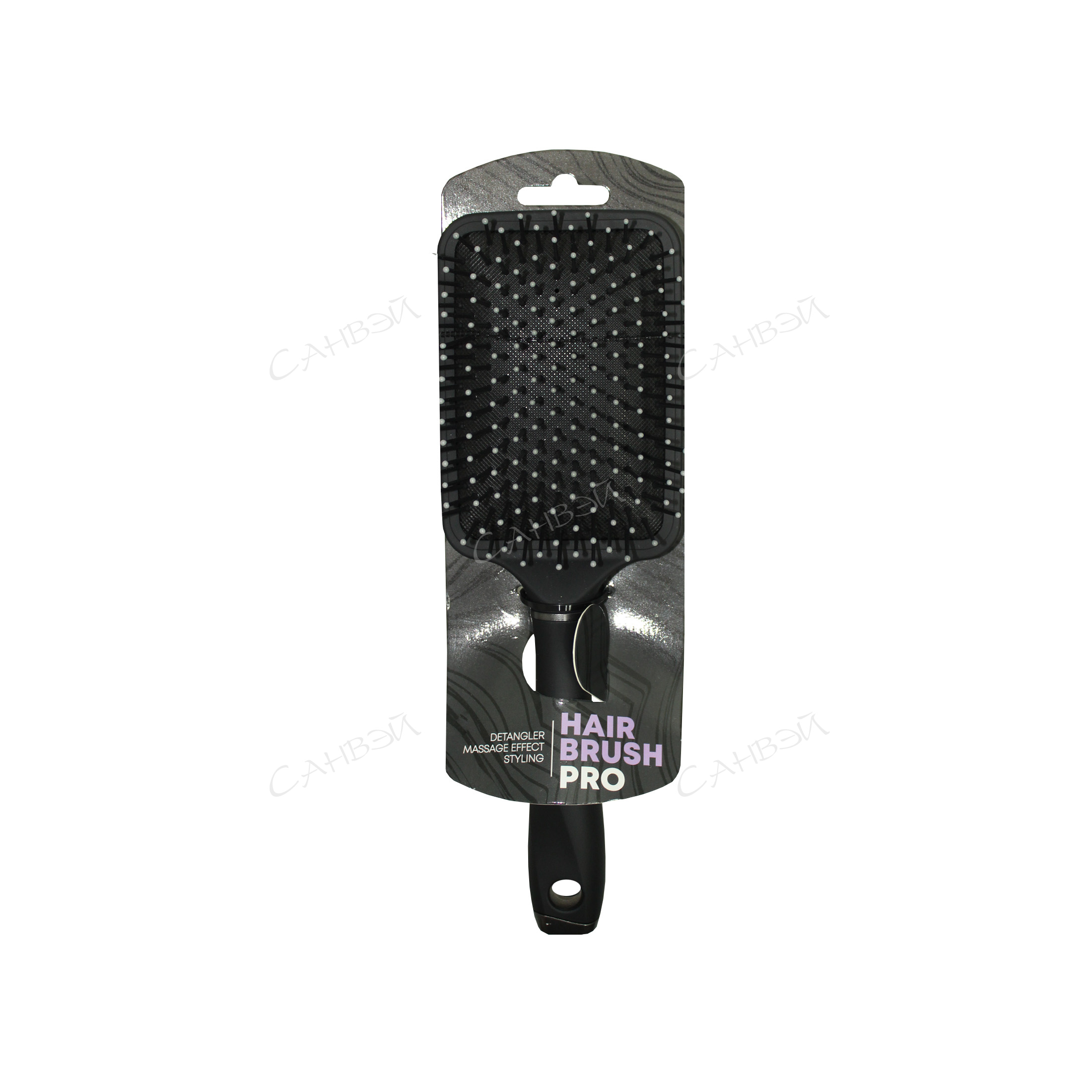 Расческа массажная с ручкой 25,6см квадратн. черная пластик GT 1шт / 48шт / 2288G-S / 544407