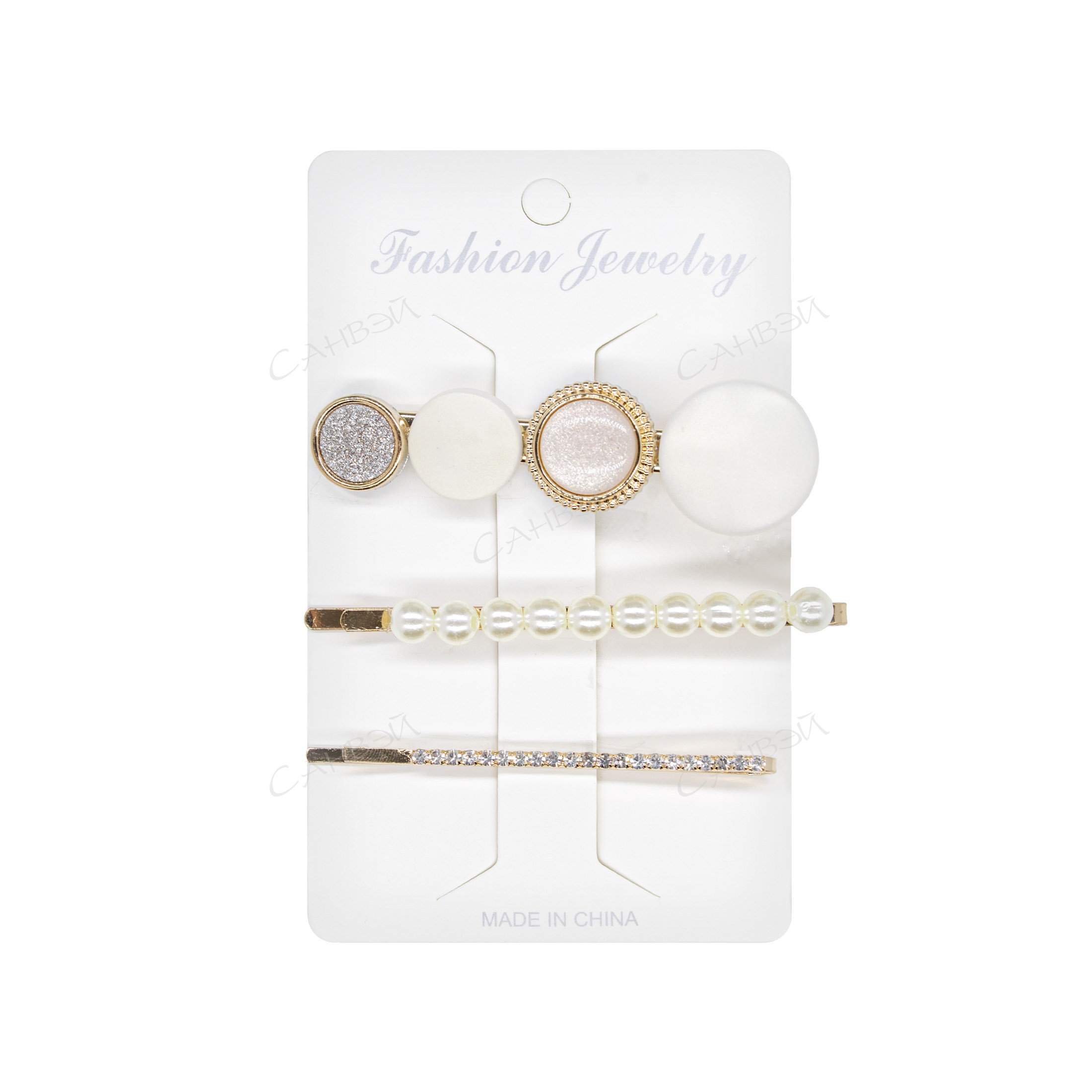 MU Заколка д/волос камни,стразы (2шт*зажим,1шт*невидим.) металл,пласт. бело-беж. GT европодвес 1 уп. / шт / H0806-93 / 518415