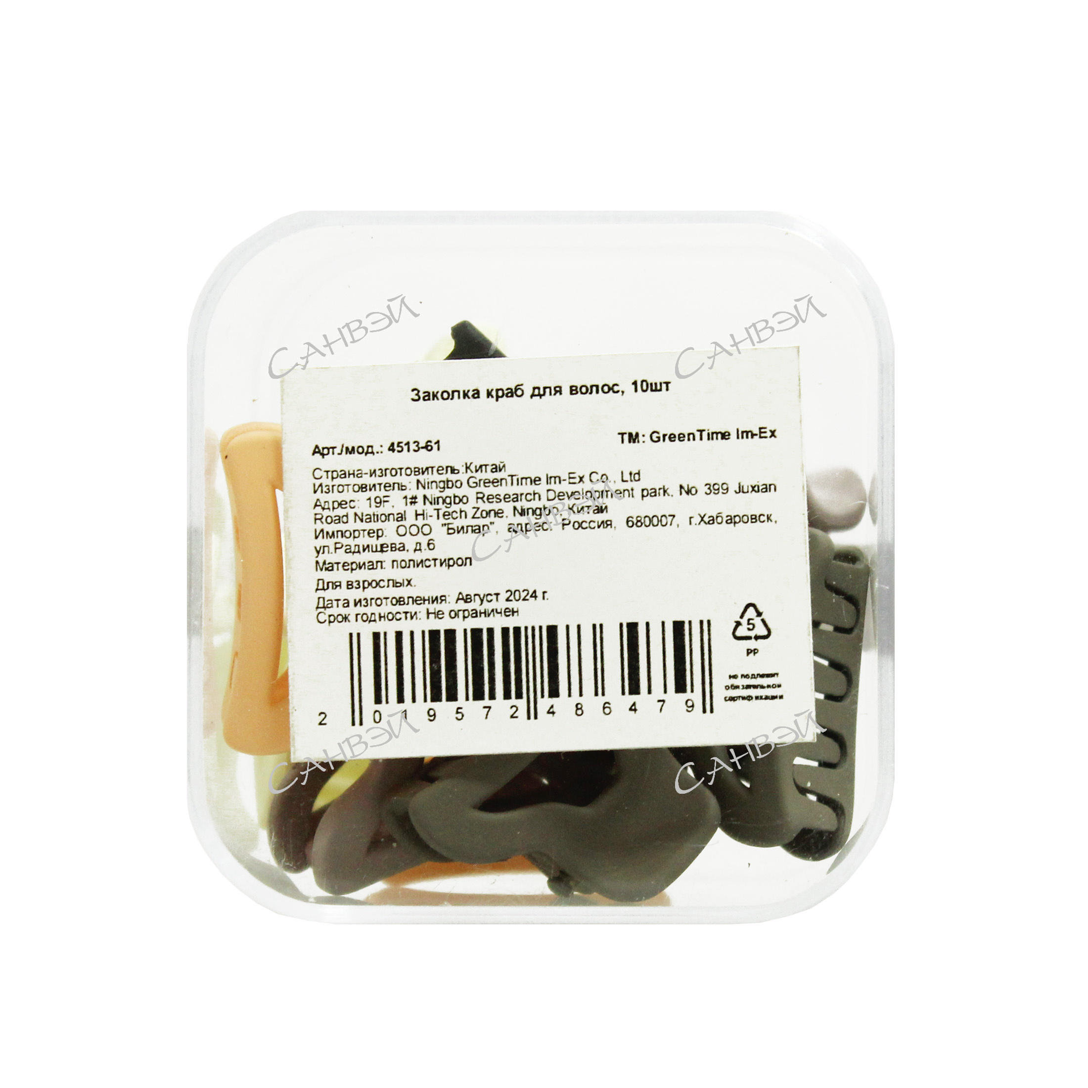 Набор заколок-крабиков для волос полистирол разноцветные 10 шт - незаменимый аксессуар для повседневного ухода и создания причёсок. В наборе удобные, прочные и стильные крабики для волос разных оттенков. Они надёжно фиксируют пряди, не тянут и не ломают волосы, подойдут для любого типа — густых, тонких, прямых или вьющихся.
