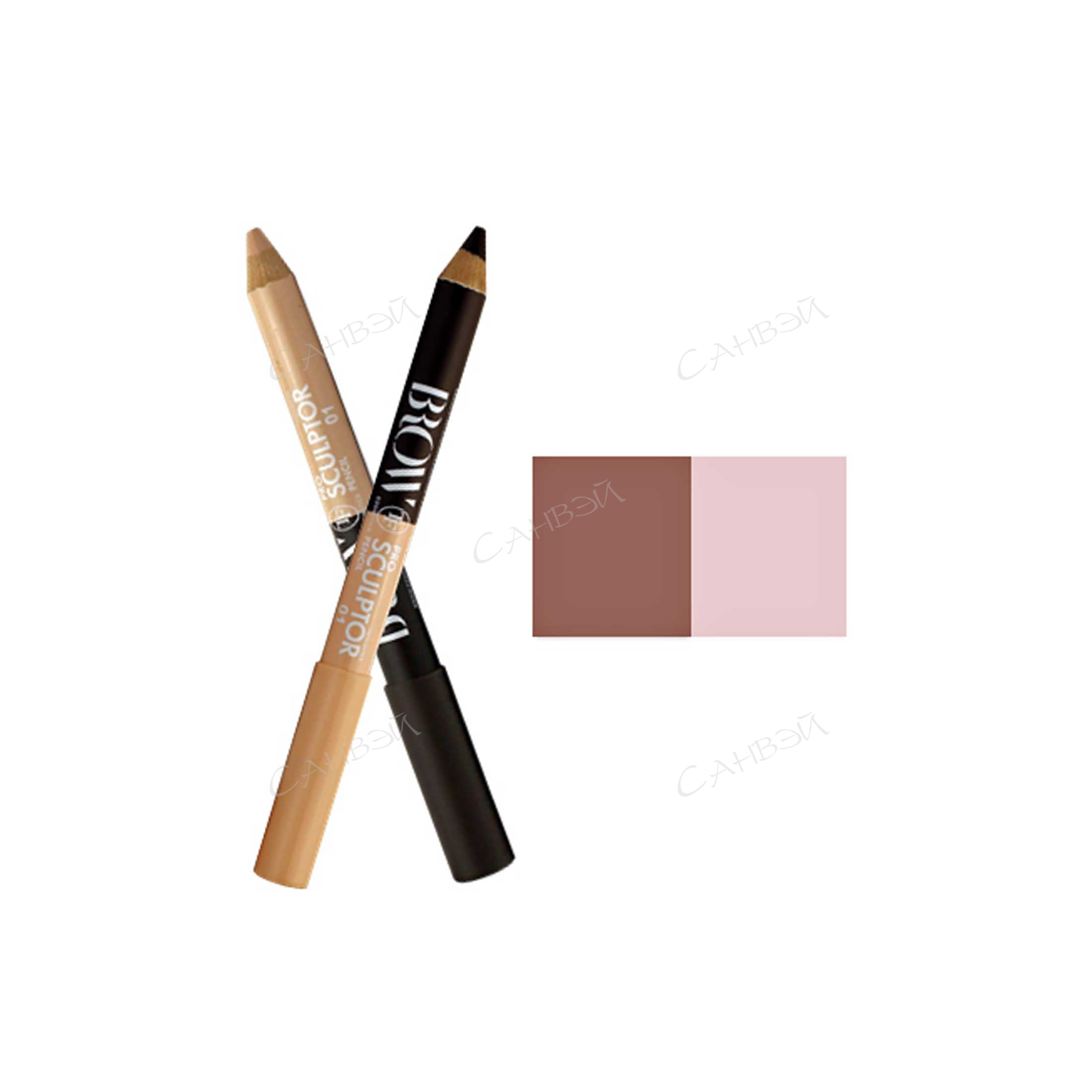 TF Карандаш для бровей двухсторонний Brow Pro Sculptor Pencil 02 Темный блонд из Санвэй - кремовый карандаш с двойной функцией: с одного края грифель для окрашивания бровей, с другого - хайлайтер для подсвечивания области под бровями.