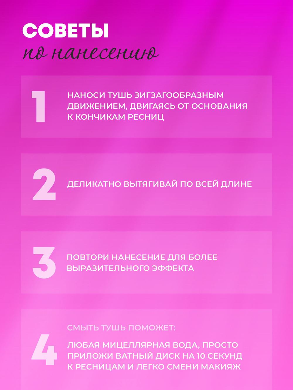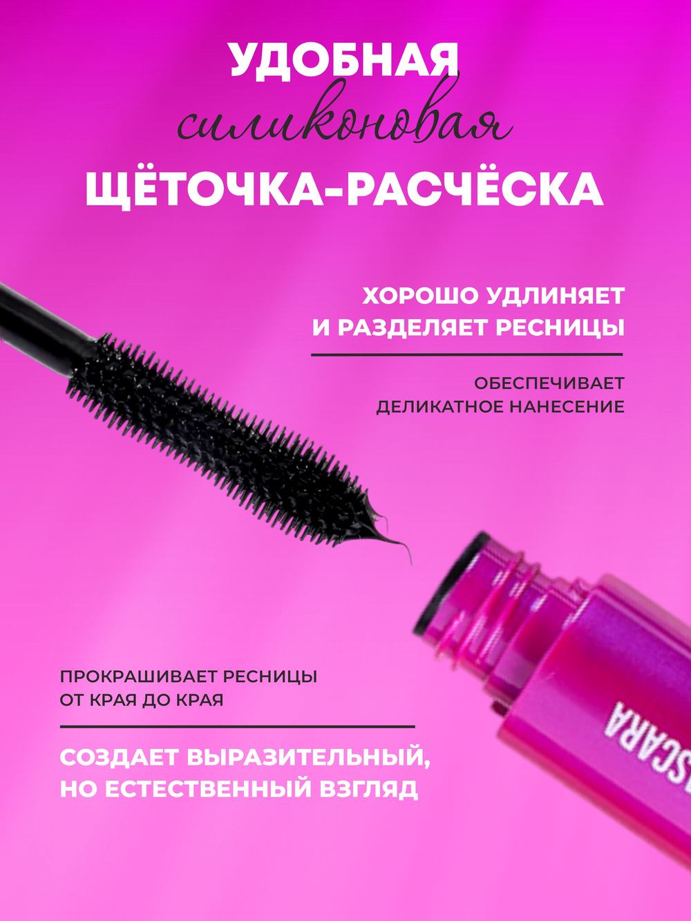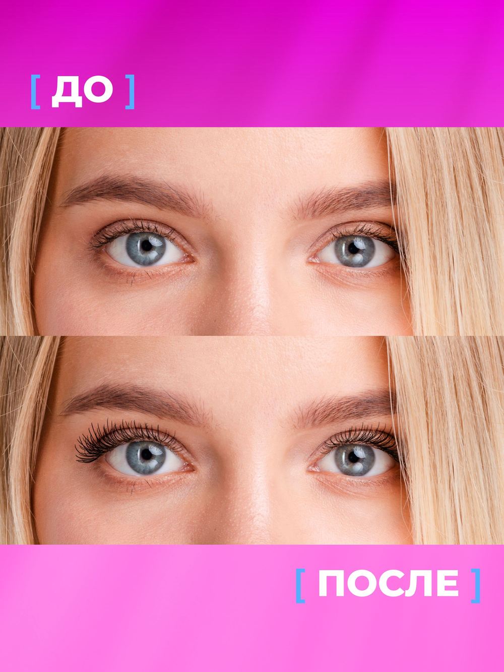 Удлиняет короткие ресницы, разделяет их, делая более выразительными. Не оставляет комочков и не размазывается. Легко смывается теплой водой.