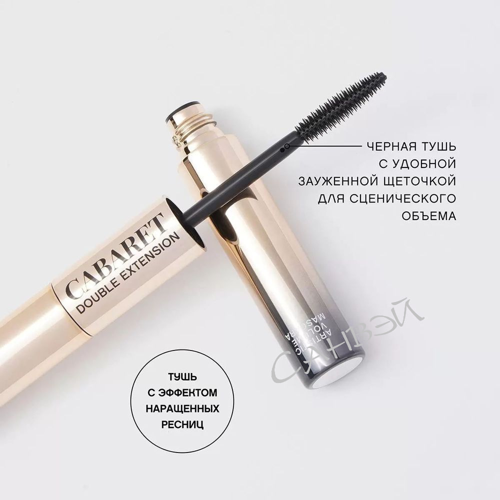 - Результат — образ с разделенными, яркими и объемными ресницами, который стойко держится весь день. С двойным продуктом CABARET DOUBLE EXTENSION ты точно добьешься потрясающего эффекта наращенных ресниц!