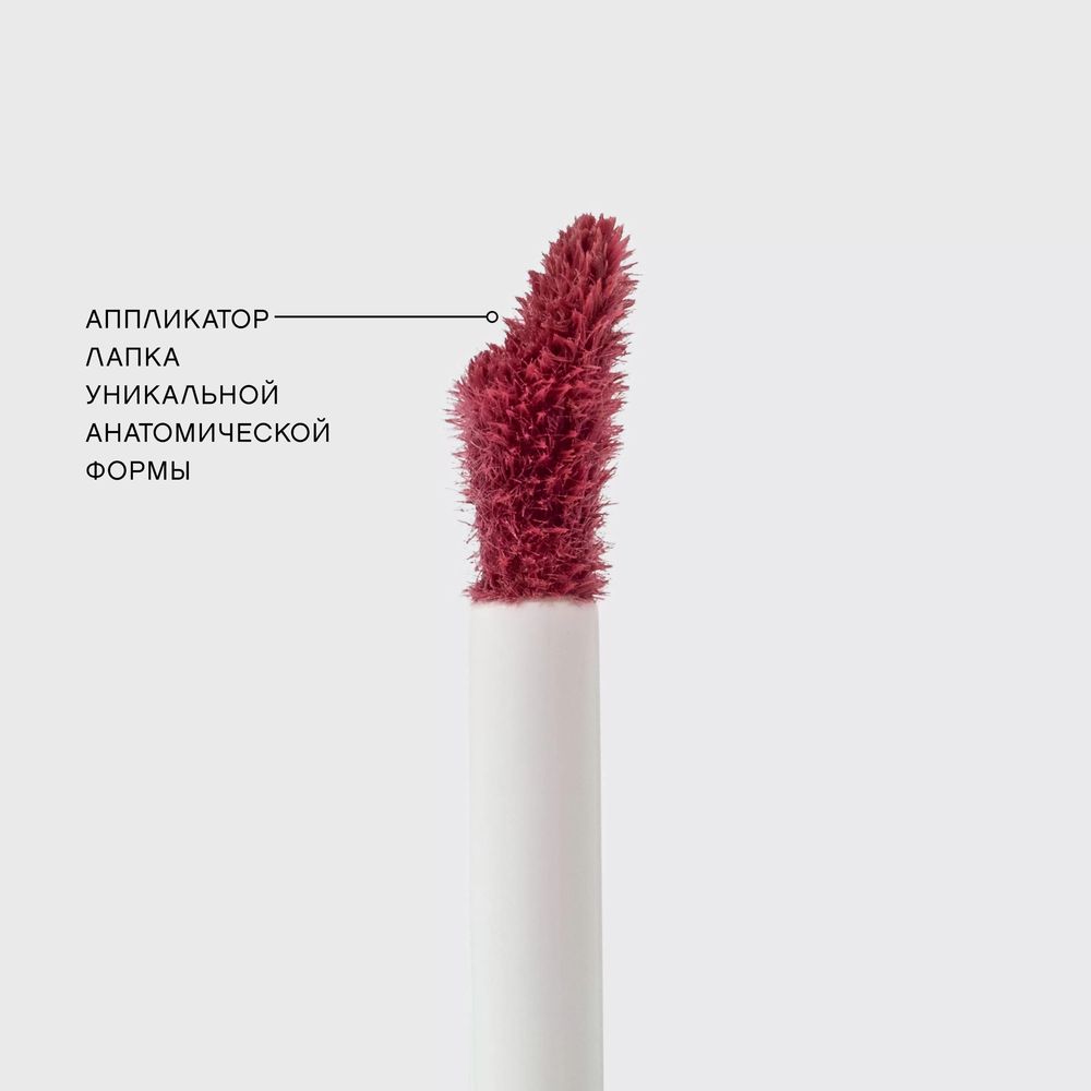 - Тинт упакован в элегантный флакон с деталью в виде помпона на крышке. Его пушистый аппликатор-лапка уникальной анатомической формы равномерно наносит продукт на всю поверхность губ и аккуратно подчеркивает контур.