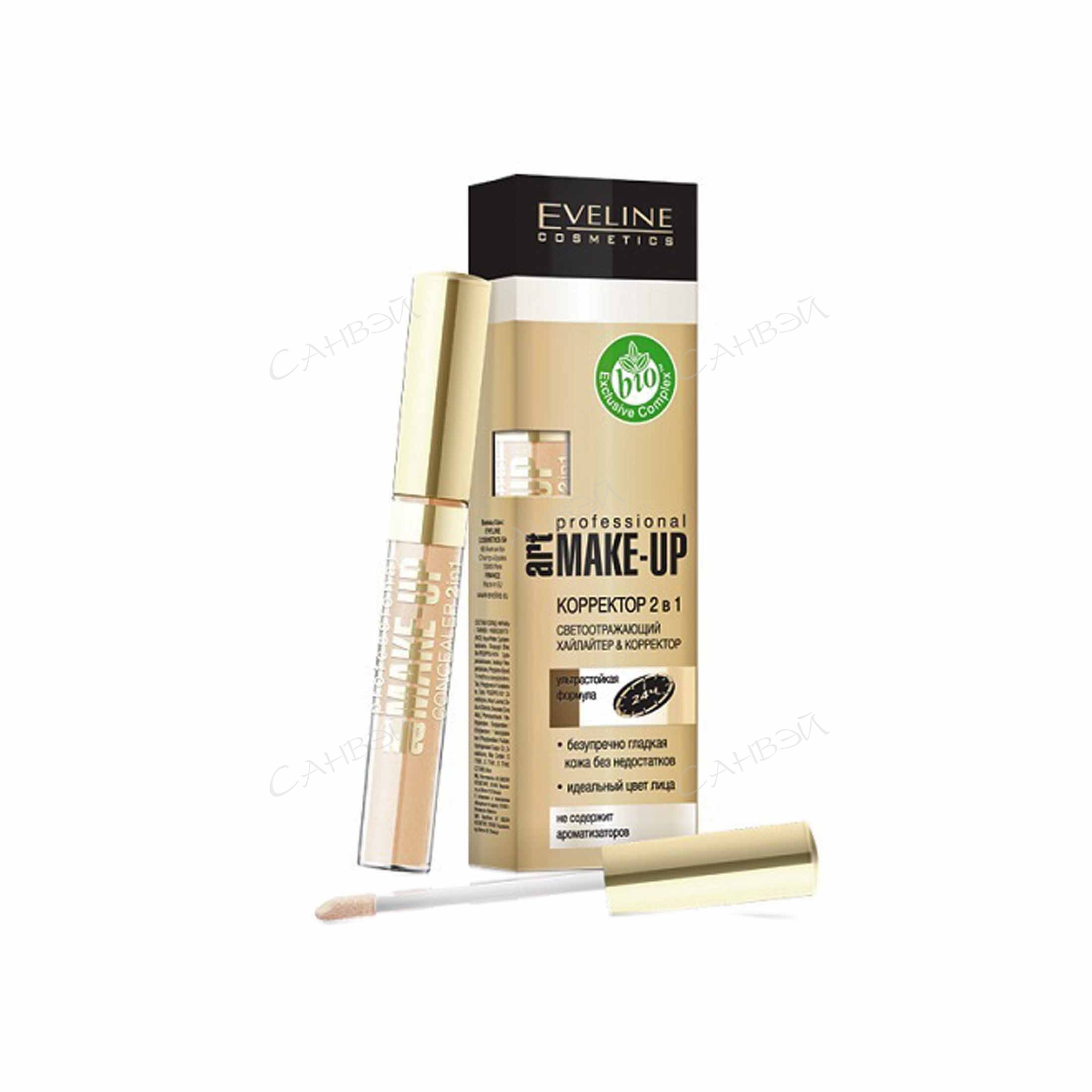 Жидкий корректор Eveline Art make-up Professional корректор 2в1 т.08 Фарфоровый 7мл светоотражающий с кисточкой из магазина Санвэй предназначен для локального нанесения.