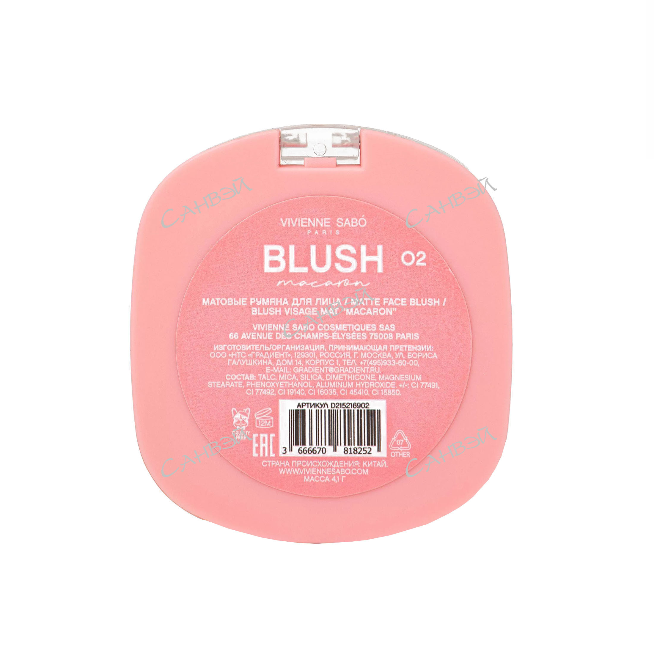 MACARON — румяна от VIVIENNE SABÓ в оттенке с матовым финишем. Это сочетание нежности, легкости и натуральности. Румяна, вдохновленные пирожными макарон, словно маленькие капельки счастья на коже, — нежные и сладкие. Натуральный оттенок с матовым финишем искрится игрой света, придавая лицу изысканную свежесть и чарующую мягкость. Пудровая шелковистая текстура идеально растушевывается и создает на коже легкий натуральный румянец. Матовая упаковка MACARON в цвет румян с золотыми деталями напоминает французские пирожные макарон.