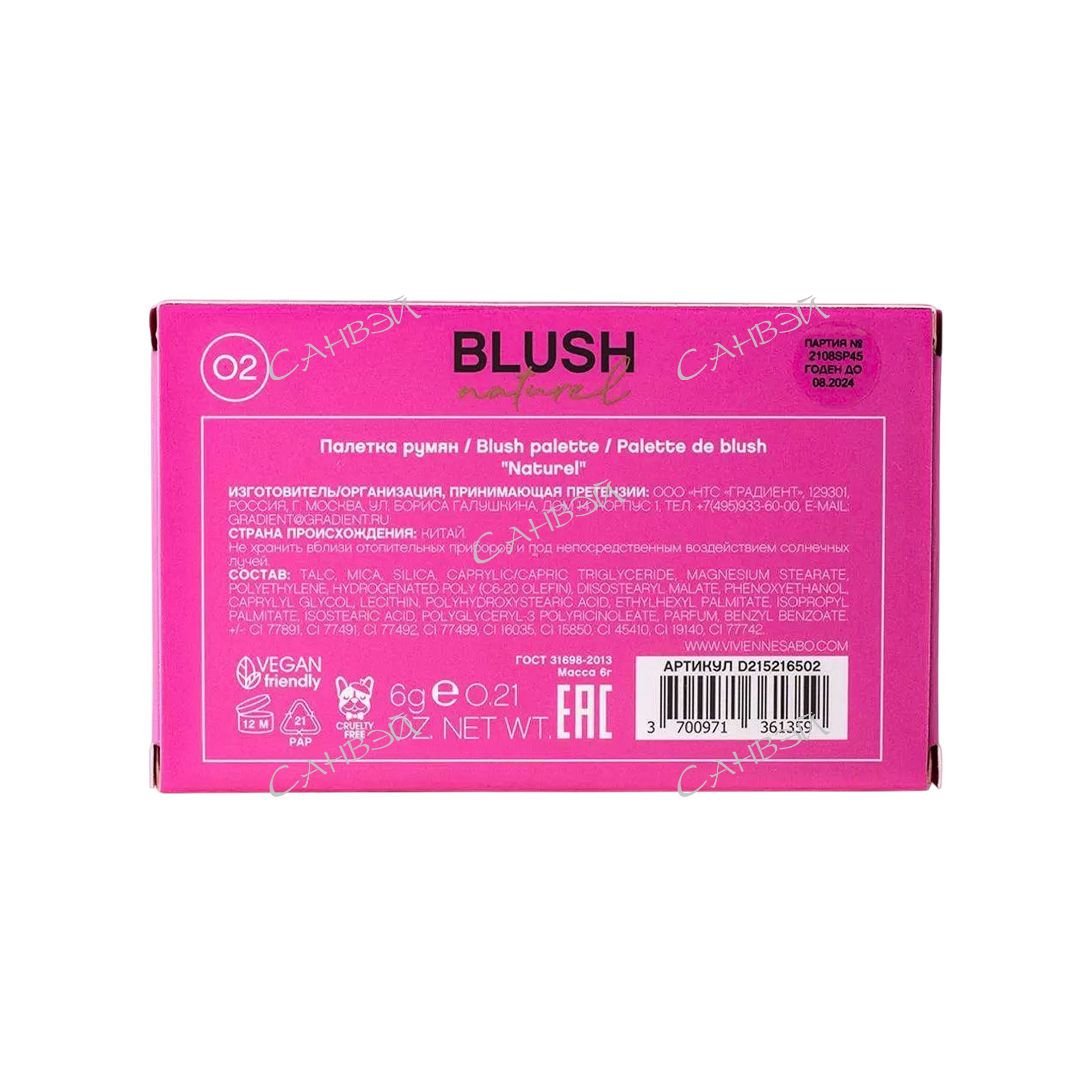 VIVIENNE SABO NATUREL румяна компактные палетка 2цвет. розовый т.02 / 10шт / d215216502 / 361359