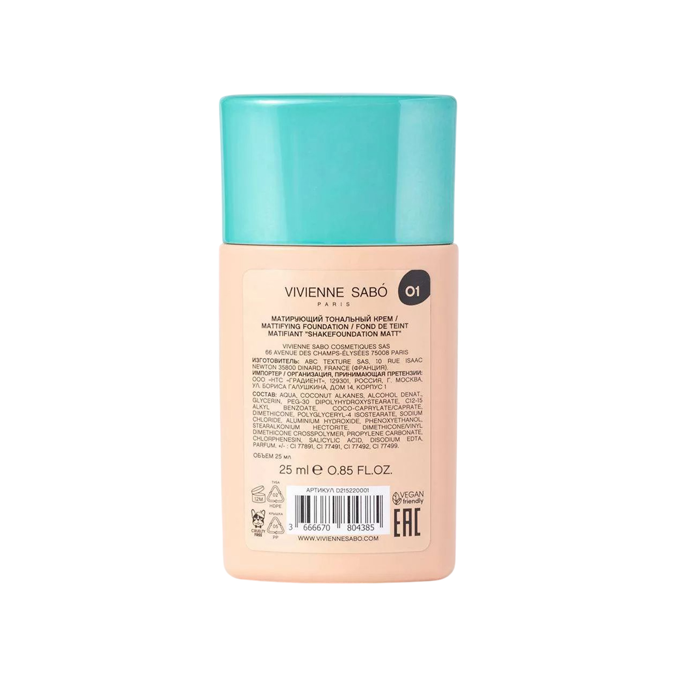 Vivienne Sabo Матирующий тональный крем с натуральным блюр эффектом Shakefoundation matt 01 Светло-бежевый сохранил лучшие свойства тонального крема-флюида SHAKEFOUNDATION: невероятно легкую текстуру, невесомость и приятное ощущение на лице.