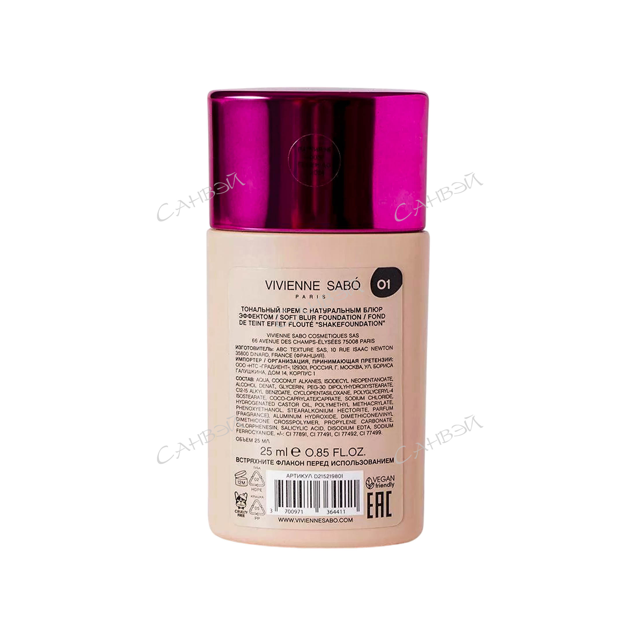 Vivienne Sabo Тональный крем с натуральным блюр-эффектом Shakefoundation 01 Светло-бежевый из интернет-магазина Санвэй выравнивает кожу, делает ее гладкой и визуально скрывает все изъяны, при этом остается совершенно незаметным весь день и выглядит очень естественно. Он маскирует лишний блеск, ухаживает за кожей и придает ей дорогой, ухоженный вид.