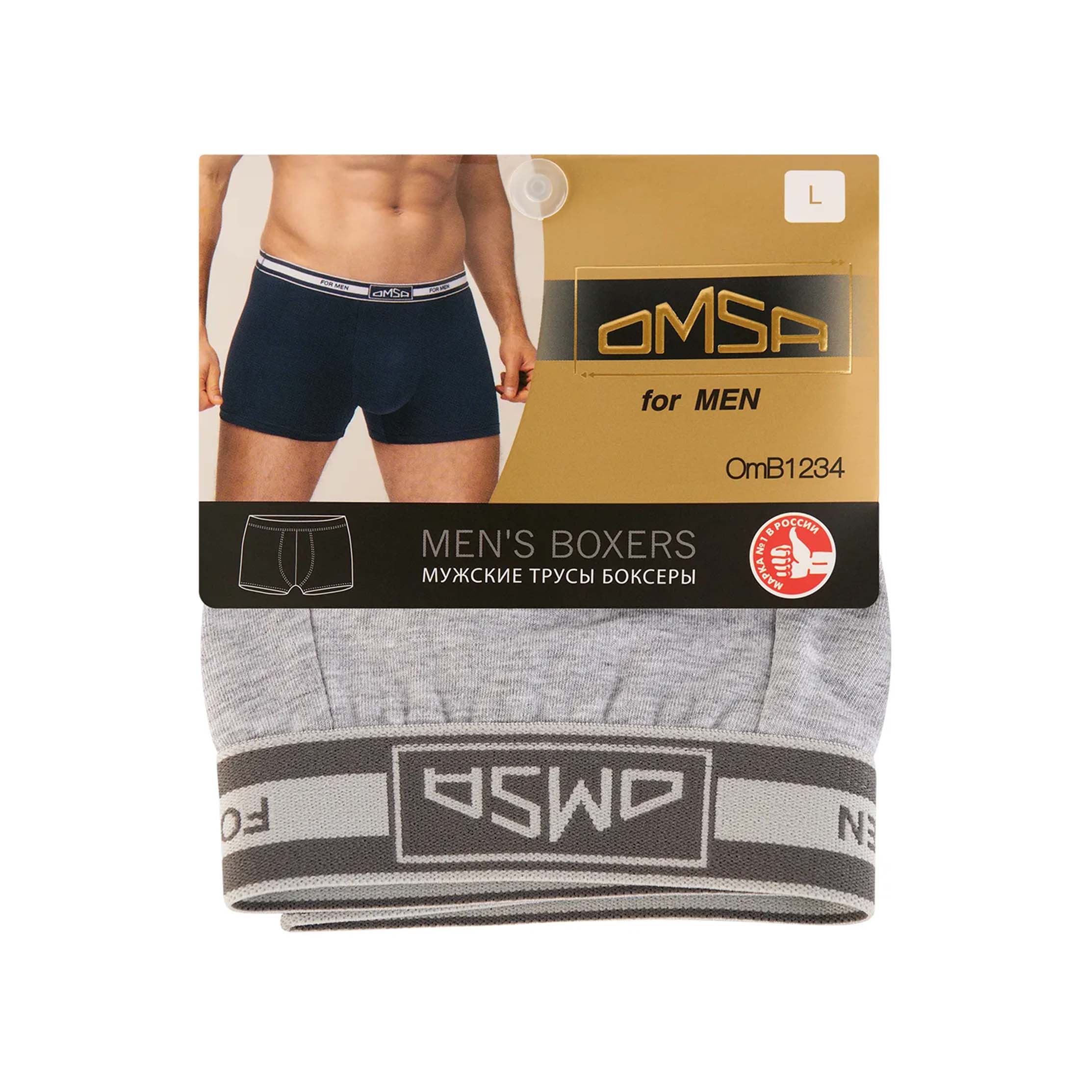 Omsa Трусы мужские Боксеры OmB 1234 Grigio melange размер 46 (M) классические, без боковых швов с открытой жаккардовой резинкой по талии, на которую нанесен логотип бренда. Выполнены из высококачественного хлопка с добавлением эластана.