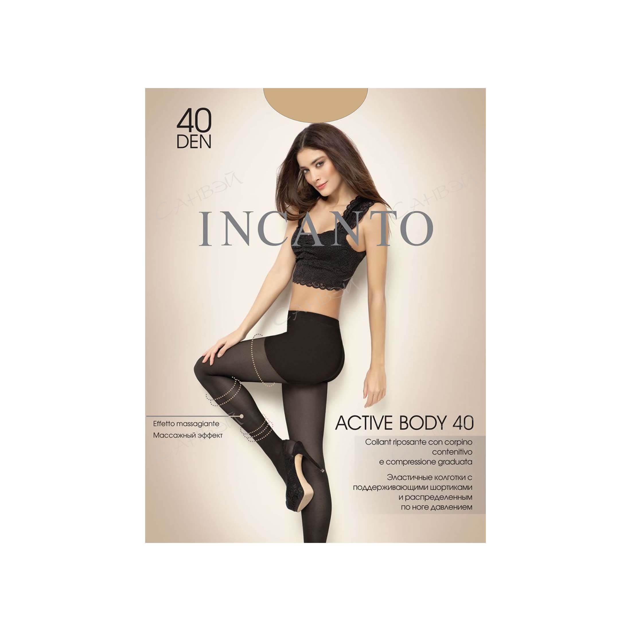 Incanto Женские колготки с массажным эффектом Active Body 40 den Daino размер M с лёгким поддерживающим эффектом. Полупрозрачная текстура плетения по ножке с гладким шелковистым эффектом.