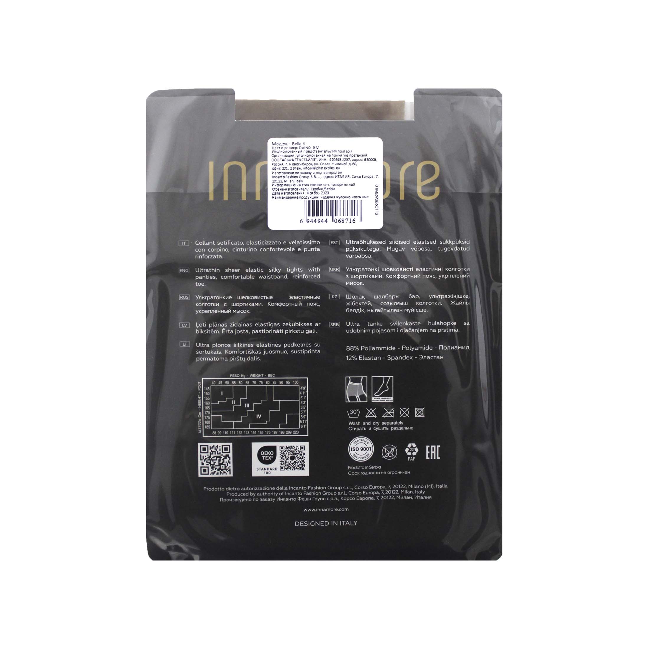 Innamore Bella колготки класс. с шортиками 8 den daino р.3 (M) 1 шт / 10шт / 068716