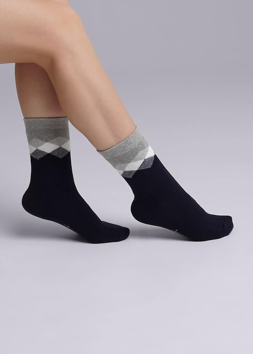 Clever Женские носки Д2342П темно-синие р25 1 пара - женские плюшевые носки с добавкой полиамида и эластана. Прочная и эластичная ткань приятна для тела, прекрасно пропускает воздух, не электризуется и подходит для чувствительной кожи. Добавка в носки полиамида повышает прочность, а эластан придает им дополнительную эластичность. Мягкие и теплые носки с ромбами на поголенке прекрасно подходят для повседневного использования и активного отдыха.