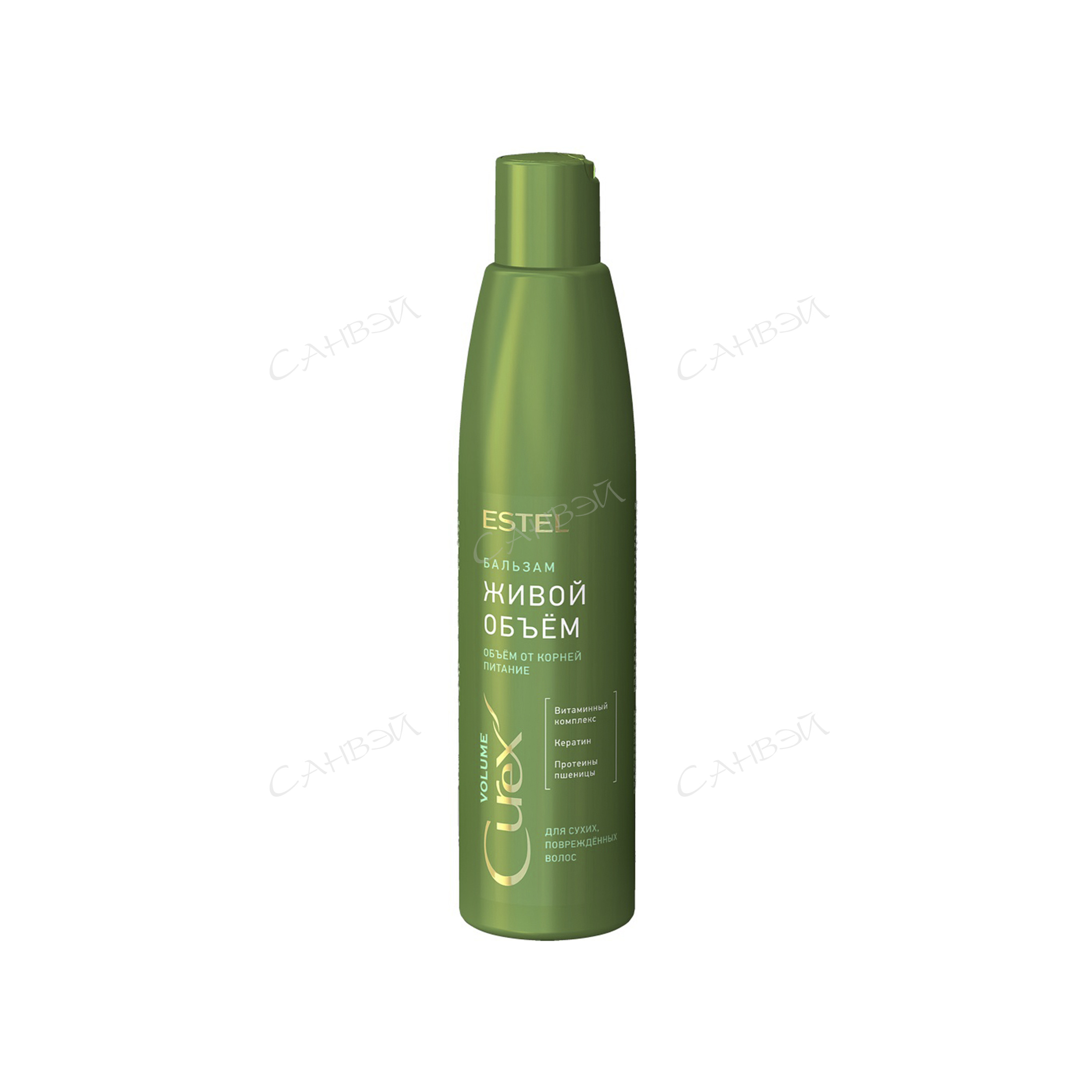 Estel Бальзам "Живой объём" для сухих, повреждённых волос CUREX VOLUME 250 мл. из интернет-магазина Санвэй cодержит провитамин В5, витаминный комплекс и масло персика. Активно увлажняет и питает, придает шелковистый блеск сухим и поврежденным волосам.