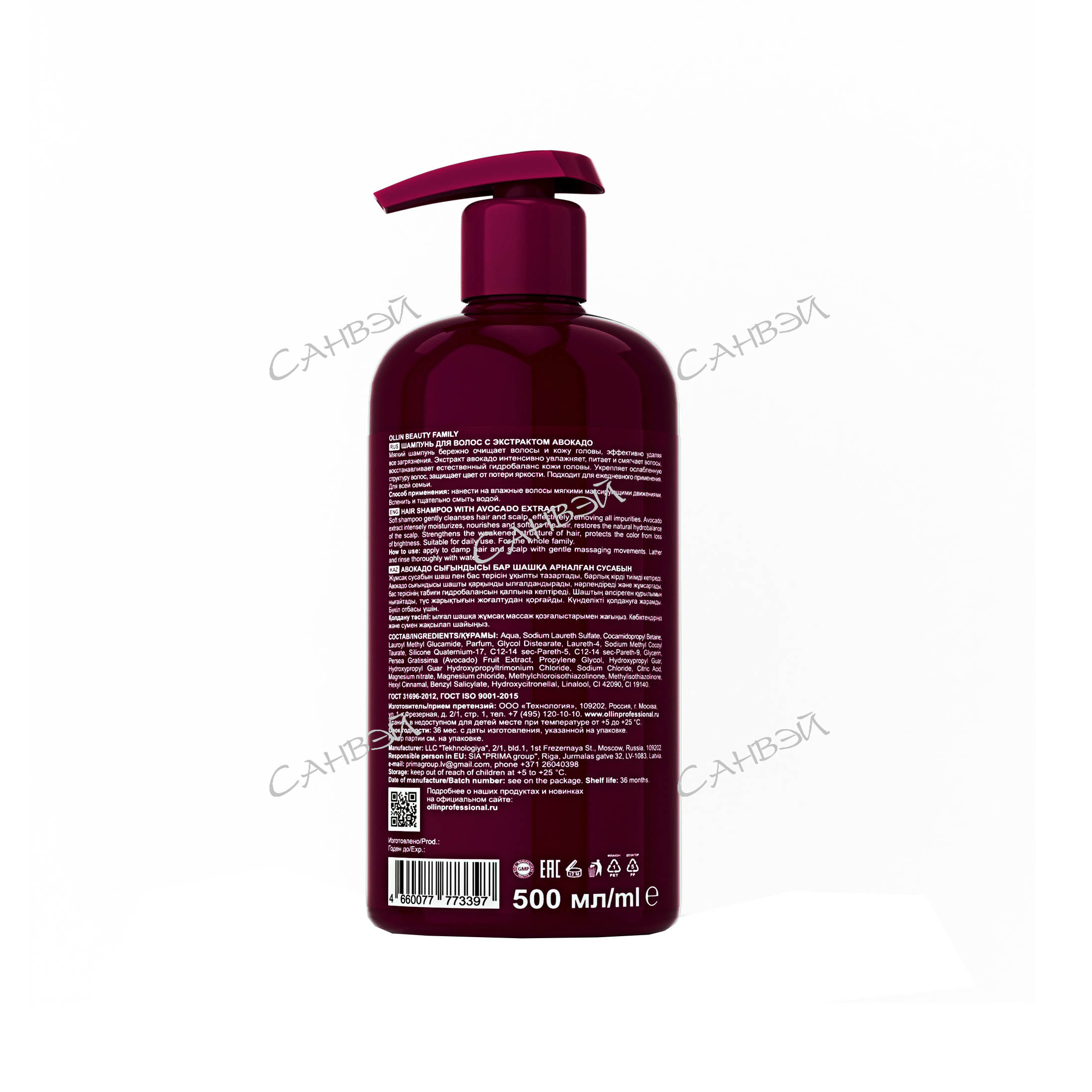 Ollin Professional Шампунь для волос с экстрактом авокадо BEAUTY FAMILY 500 мл. из интернет-магазина Санвэй - мягкий шампунь бережно очищает, эффективно удаляя все загрязнения.