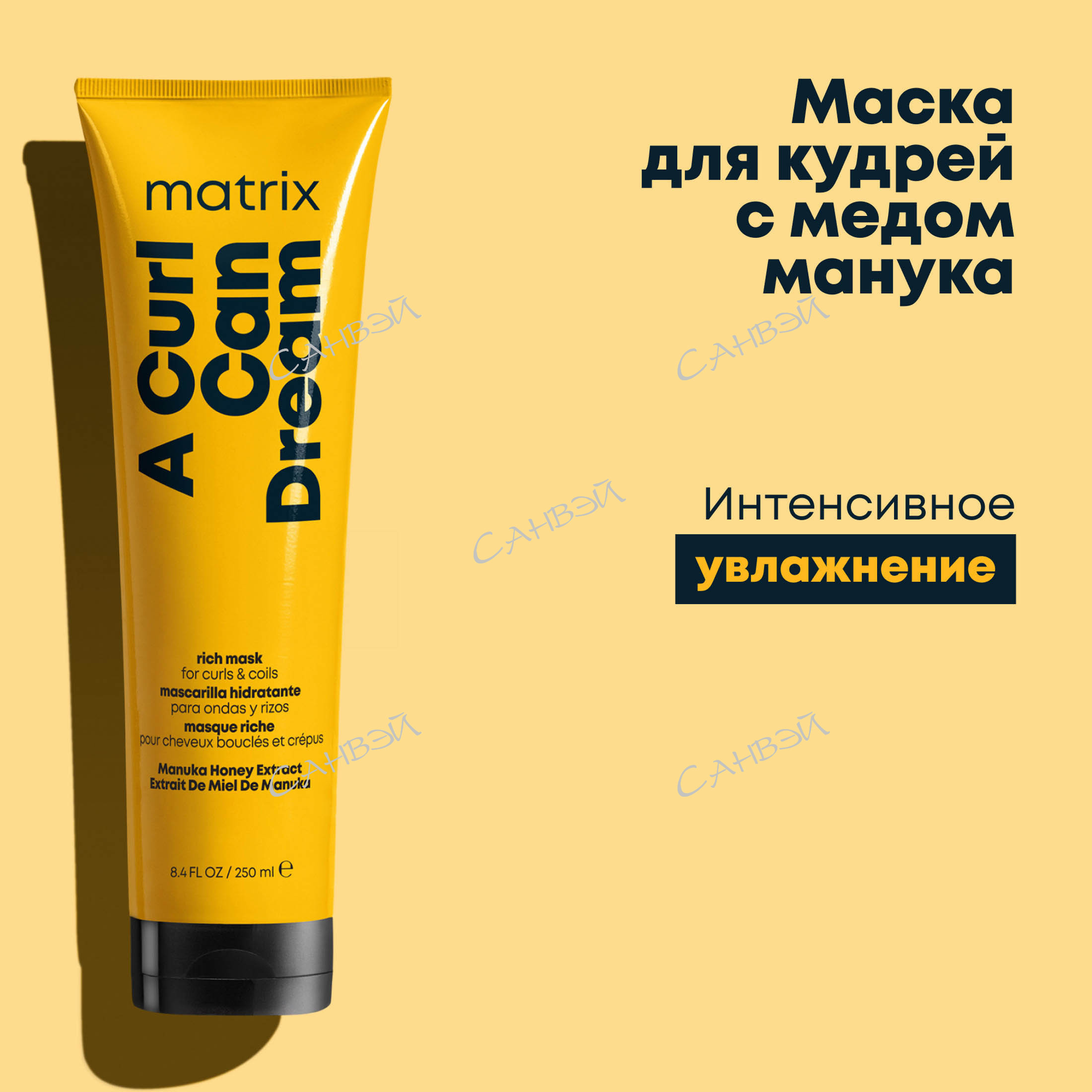 Matrix Профессиональная маска интенсивного увлажнения A Curl Can Dream для кудрявых и вьющихся волос, 250 мл из интернет-магазина Санвэй для вьющихся и кудрявых волос, с экстрактом меда Манука, интенсивно увлажняет, дисциплинирует и наполняет питанием без утяжеления.