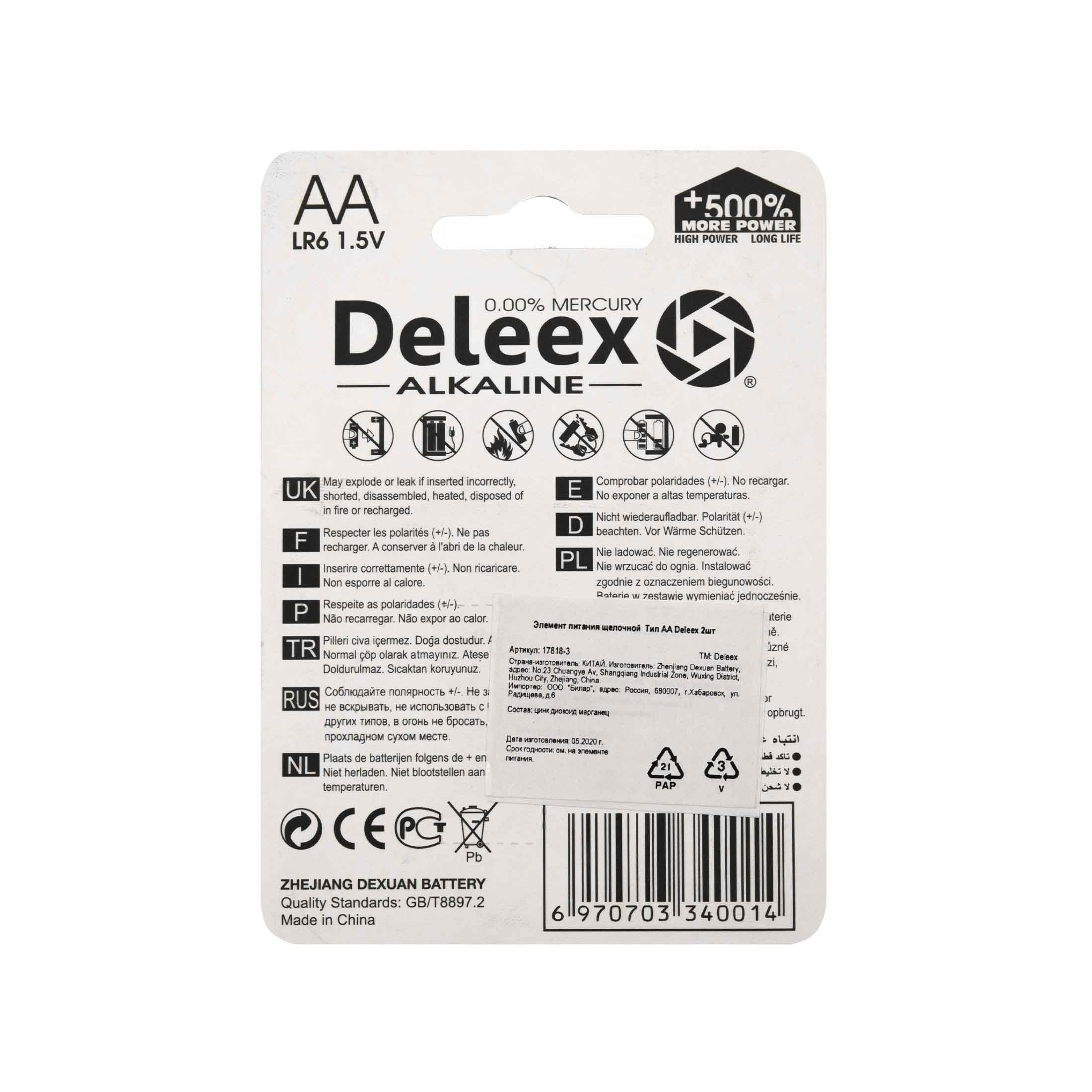 Батарейки Deleex размера AA - универсальные щелочные батарейки, которые станут надежным источником питания для часто используемых устройств, нуждающихся в дополнительной мощности. С этими батарейками вы можете полностью положиться на свое устройство. Батарейки Deleex - лучший выбор, если вы ищете надежный и долговечный источник питания для часто используемых устройств, таких как механизированные игрушки, фонарики, портативные игровые консоли, пульты дистанционного управления, CD-плееры и т.д.