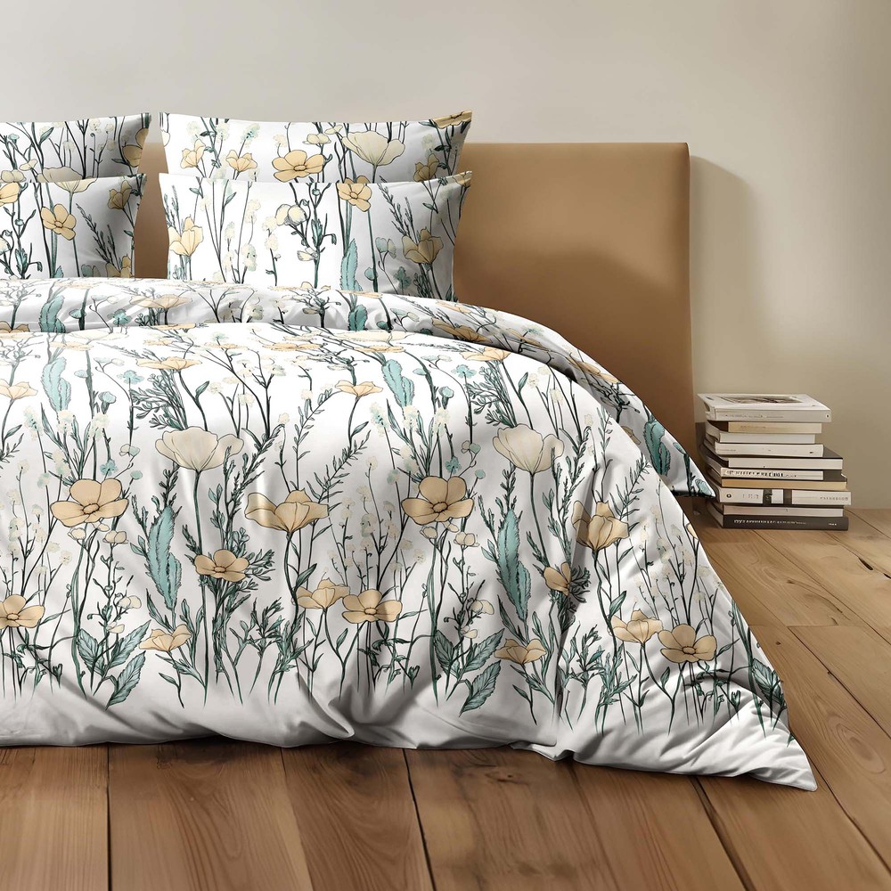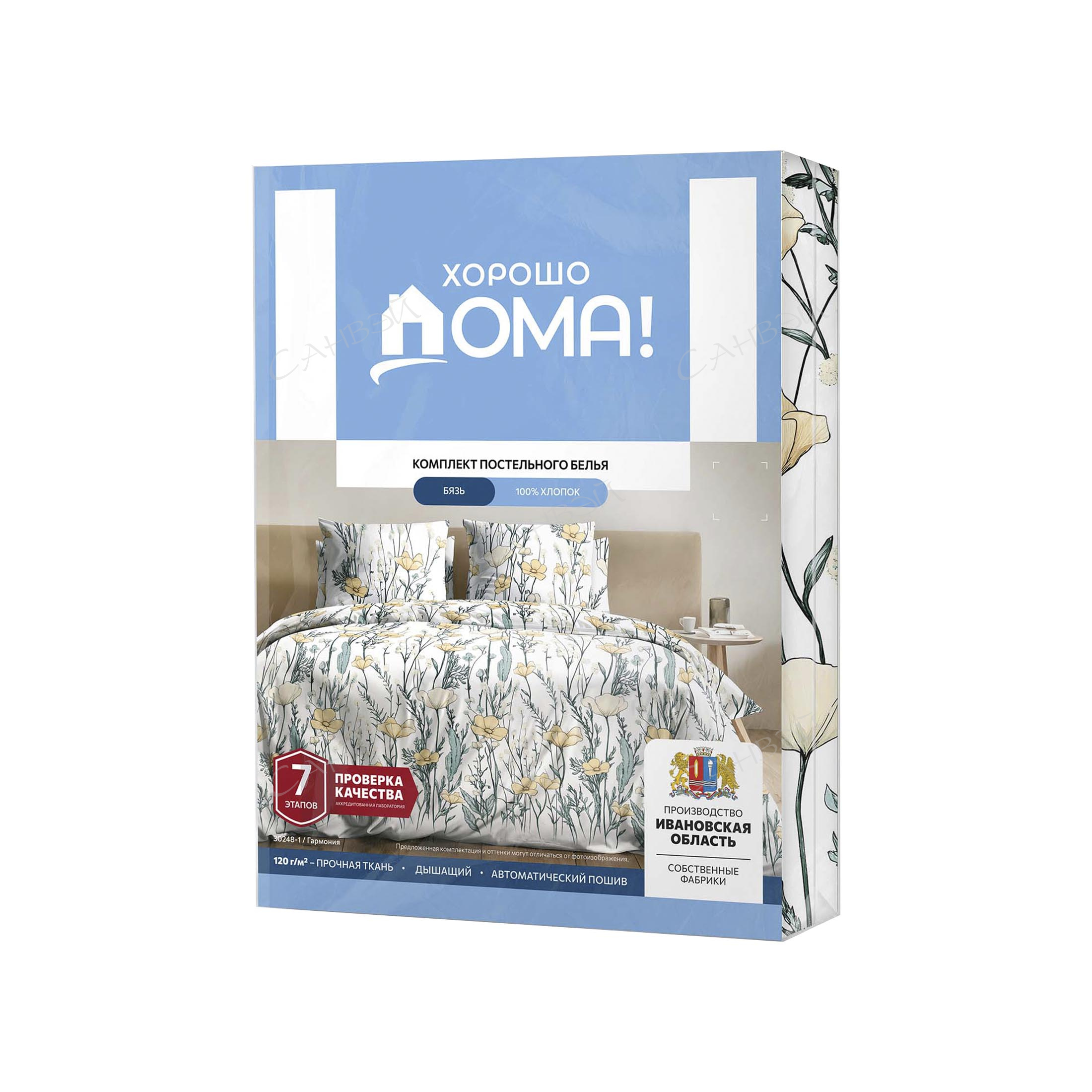 КПБ 1,5сп Хорошо Дома Гармония 4пр. белый Полевые цветы 100%х/б,бязь 120г/м2 1уп. / 7шт / 936060 / 146362
