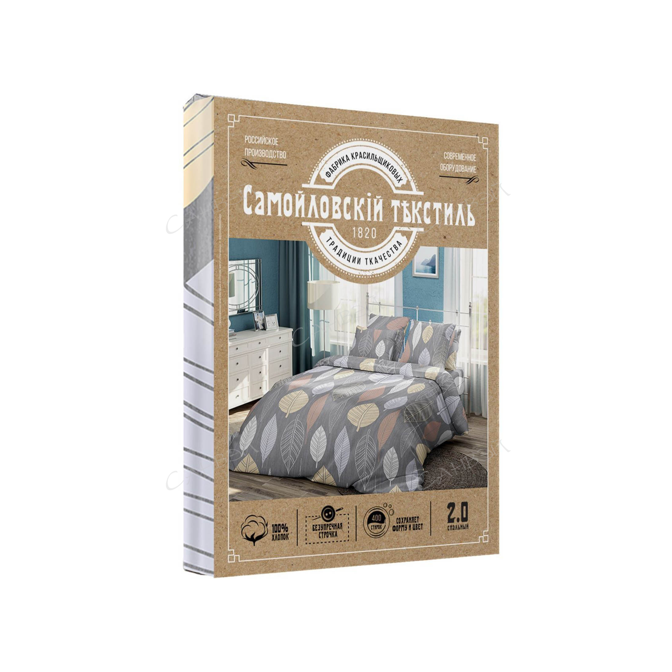 КПБ евро 100% х/б,бязь 105 г/м2 листья микс 4 пр. Самойловский Текстиль / шт / 759296 / 643479