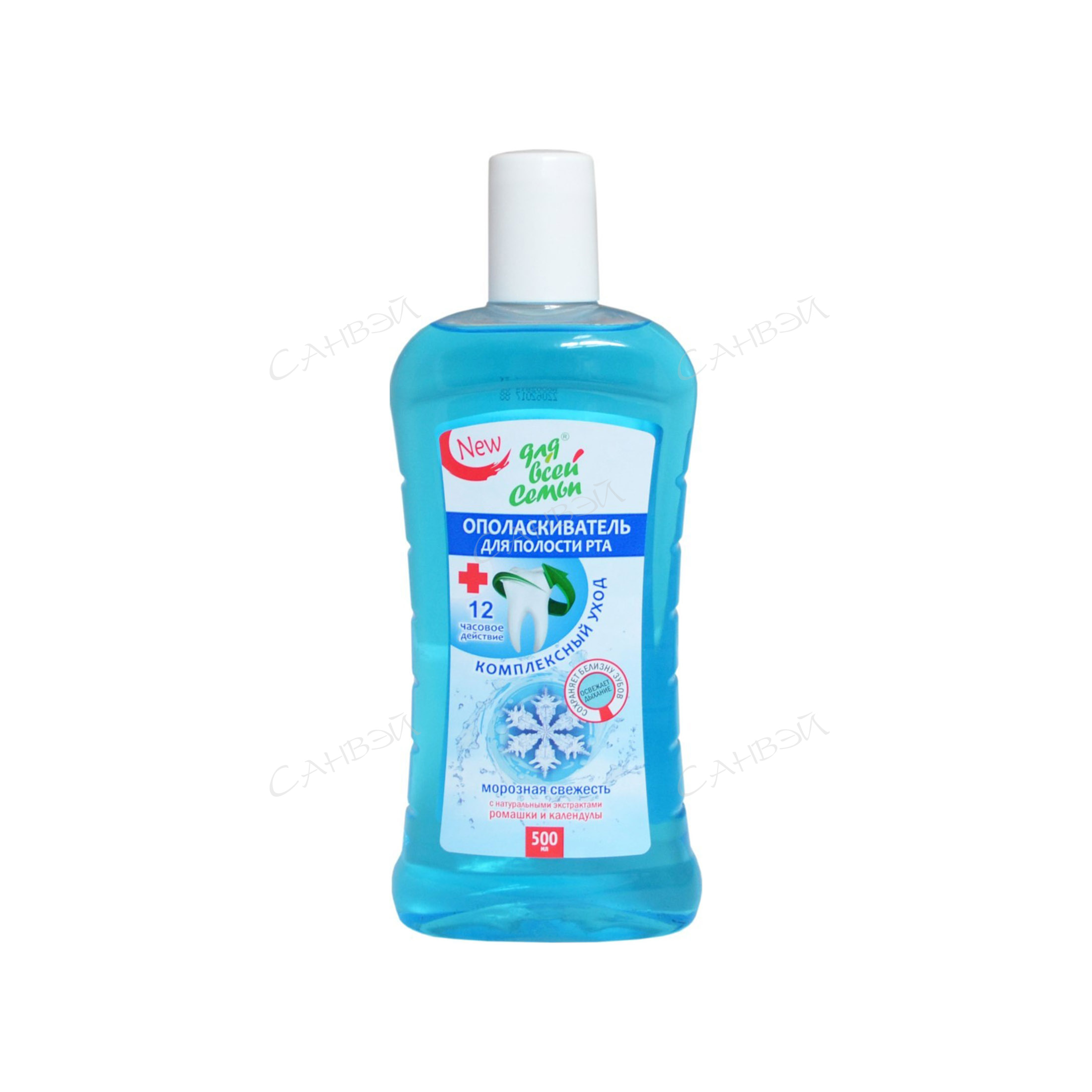 Ополаскиватель для полости рта Для всей семьи рекомендован для ежедневного профилактического ухода за дёснами, оказывает противовоспалительное действие, укрепляет их, обладает антисептическим свойством. Морозная свежесть придаст дыханию свежий аромат, как после чистки зубов.