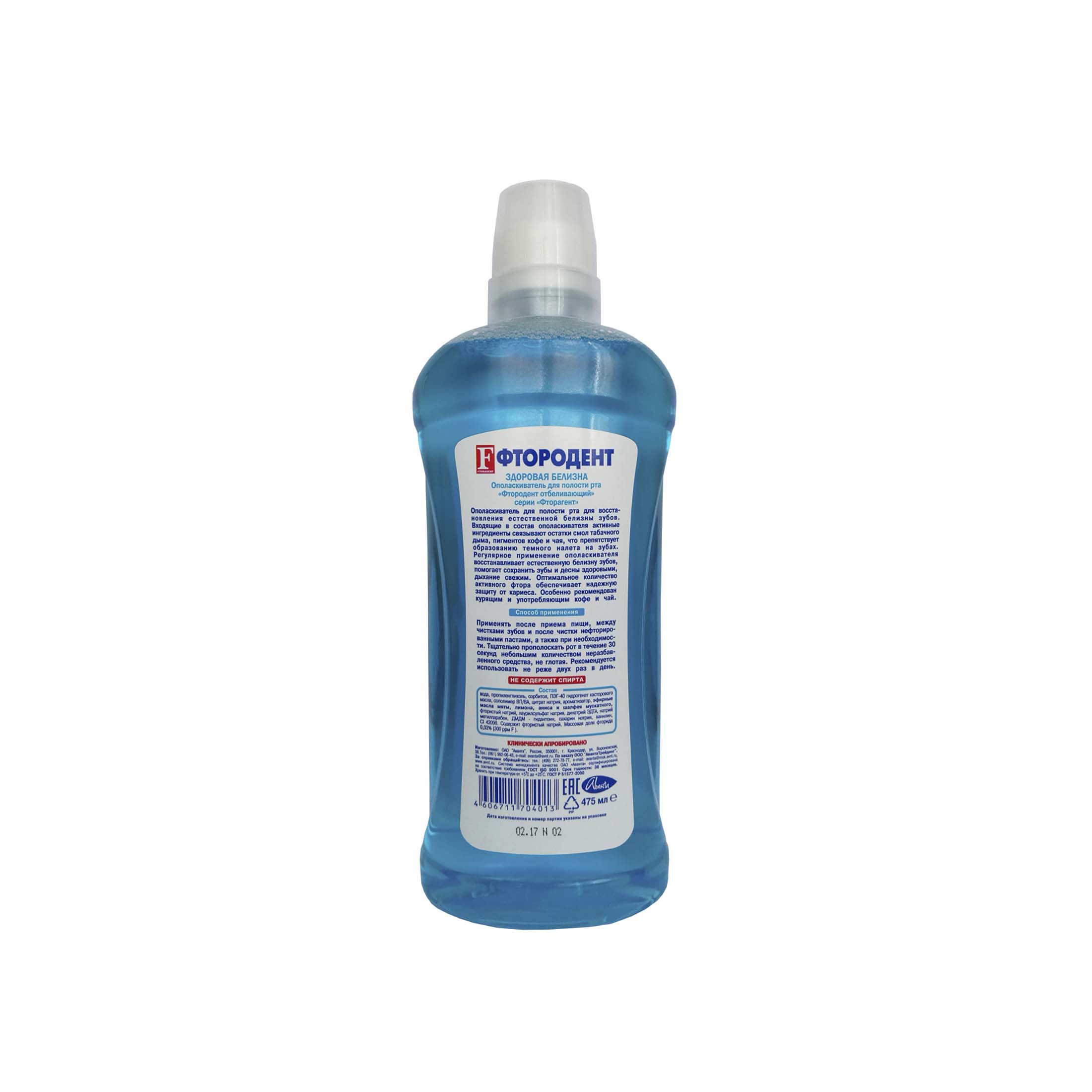 Ополаскиватель полости рта Фтородент Отбеливающий восстанавливает естественную белизну зубов, препятствует образованию темного налета на зубах, обеспечивает надежную защиту от кариеса. Входящие в состав ополаскивателя активные ингредиенты связывают остатки смол табачного дыма, пигментов кофе и чая, что препятствует образованию темного налета на зубах. В число активных ингредиентов входят эфирные масла: лимонное, мятное, анисовое, шалфея мускатного.