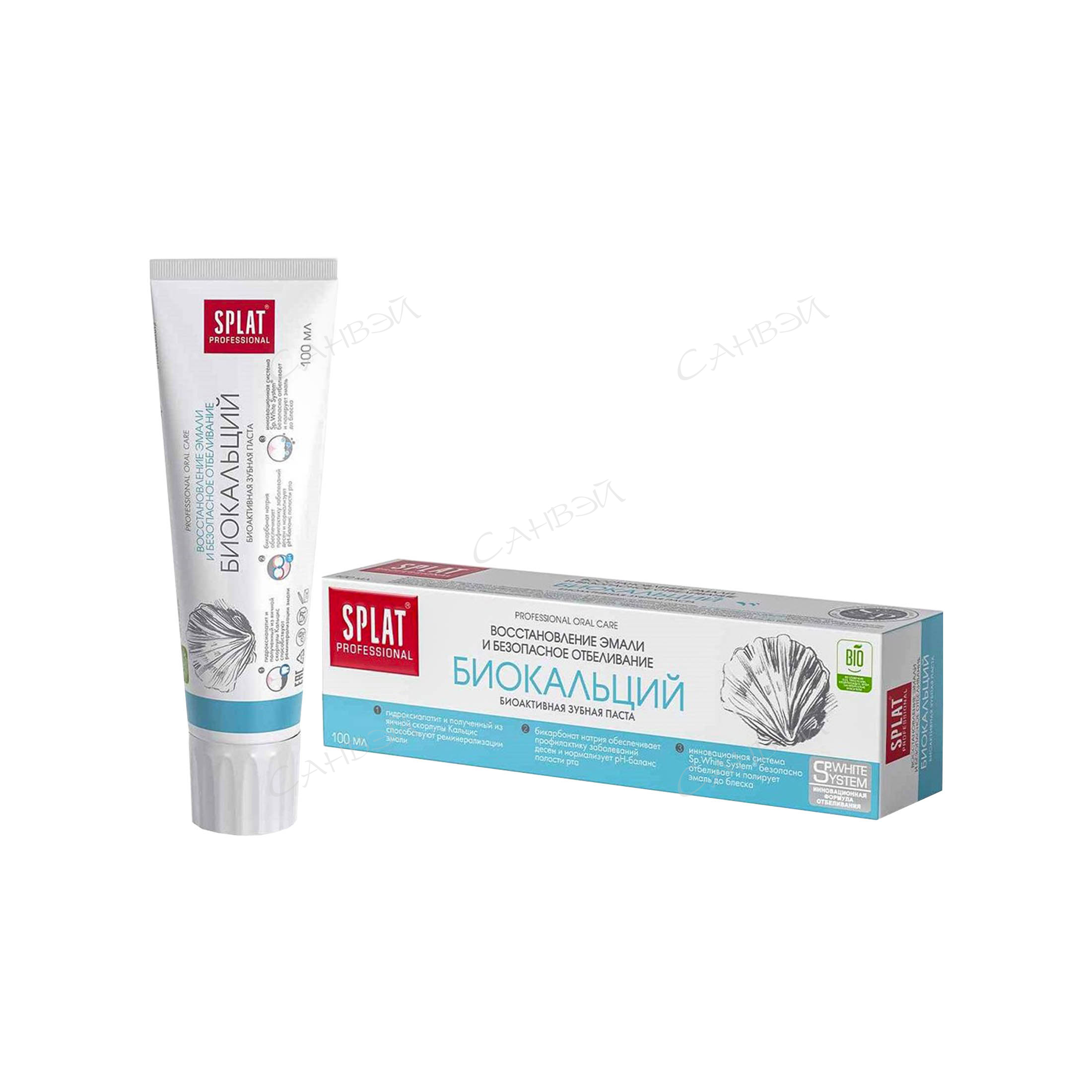 Зубная паста SPLAT Professional Биокальций для восстановления эмали и отбеливания зубов, комплексный уход за полостью рта с кальцием, 100 мл в магазине Санвэй насыщает зубы природным кальцием, укрепляя их и восстанавливая поврежденные участки.