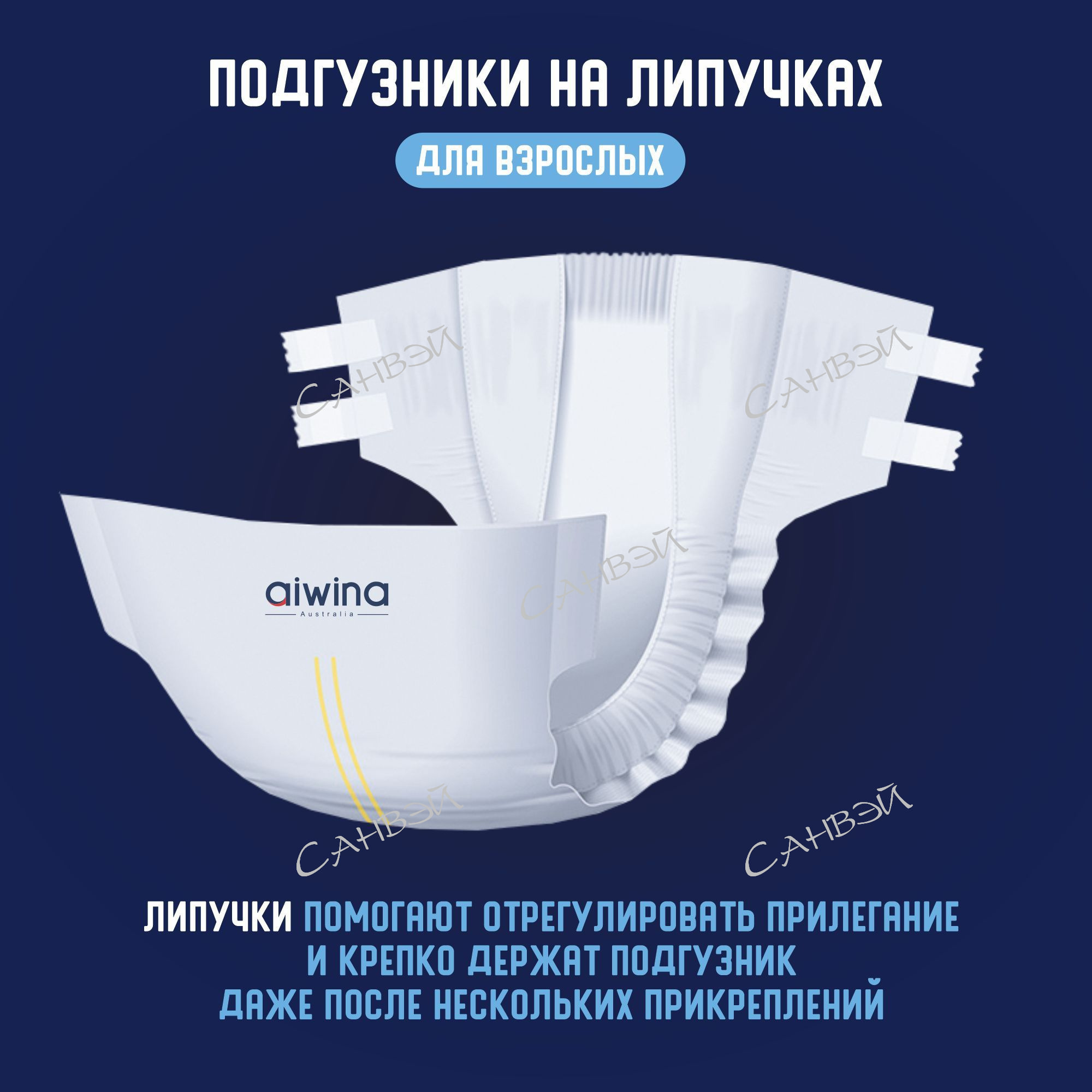 Aiwina Premium Подгузники для взрослых на липучке (XL) 99х80 см (10шт) из интернет-магазина Санвэй предназначены для использования маломобильными и пожилыми людьми, людьми с болезнями мочевой системы, беременными женщинами.