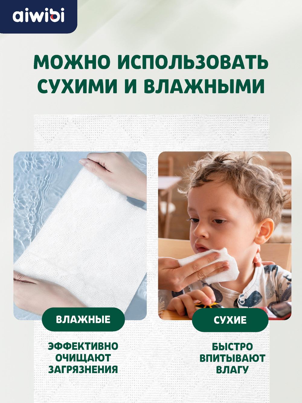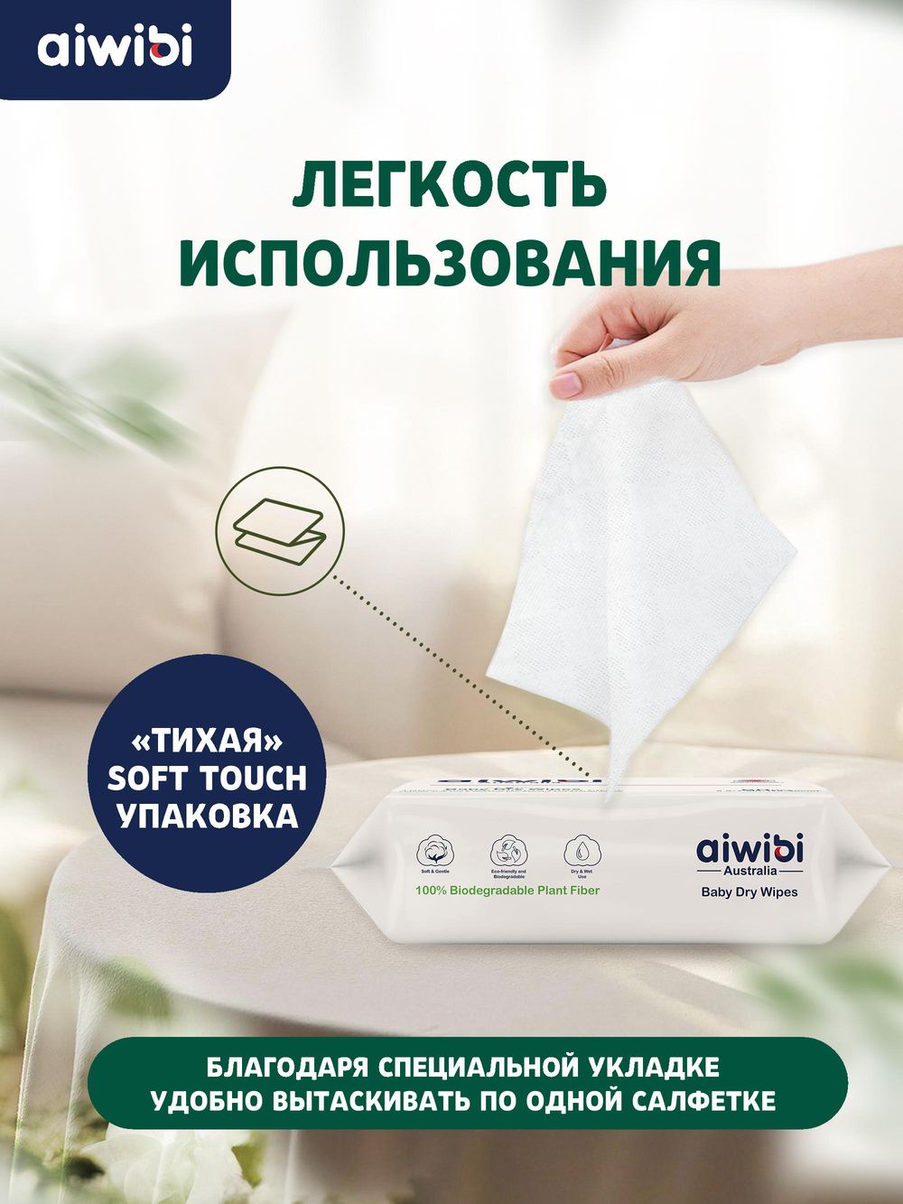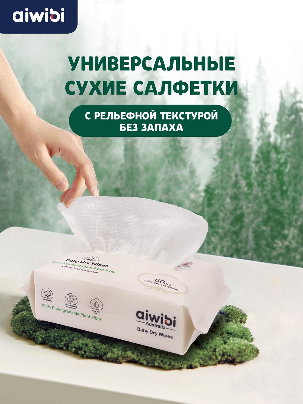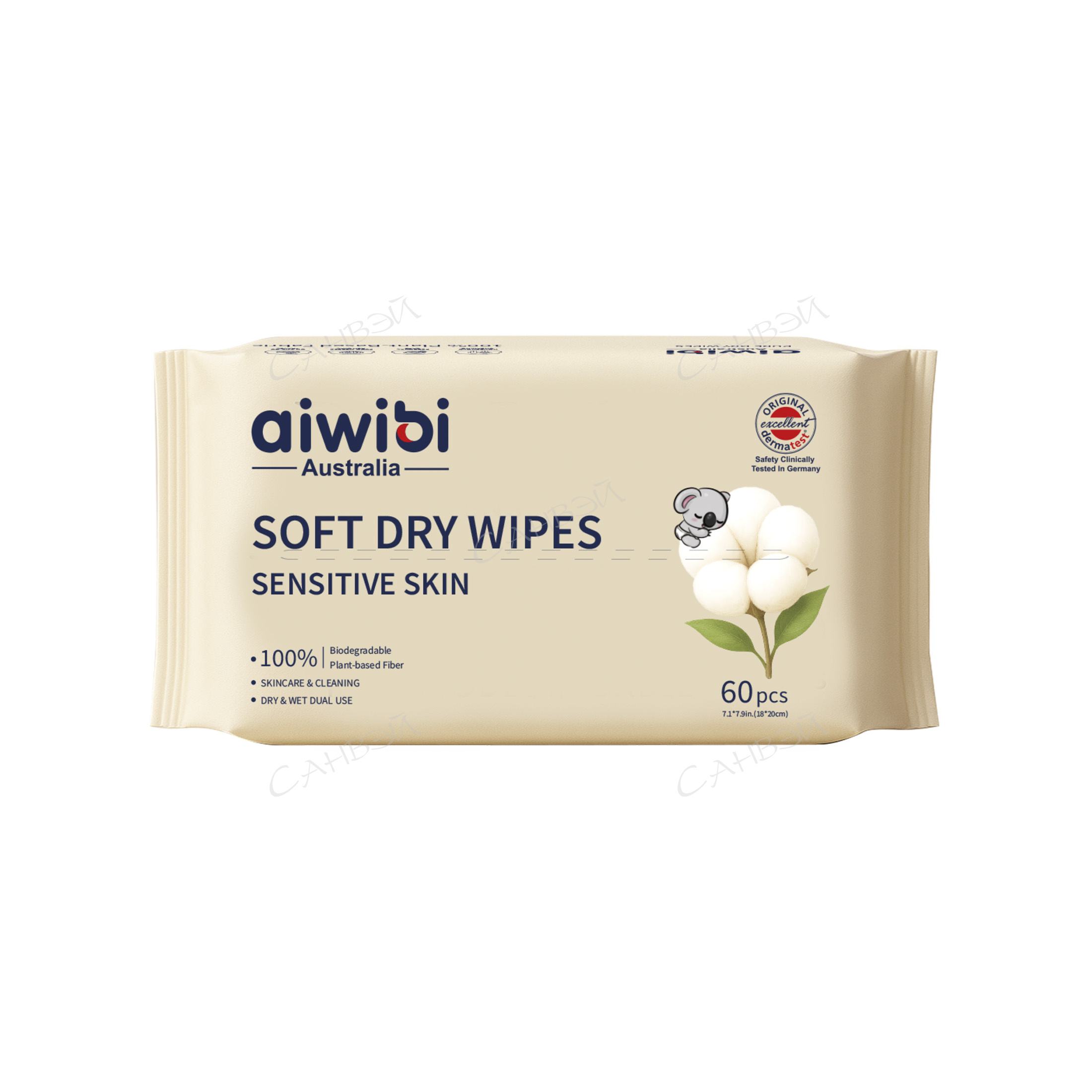 Aiwibi салфетки сухие неткан.материал (60шт) д/чувствит.кожи 18*20см белые м/уп / 48шт / AWB-DW6002 / 134818