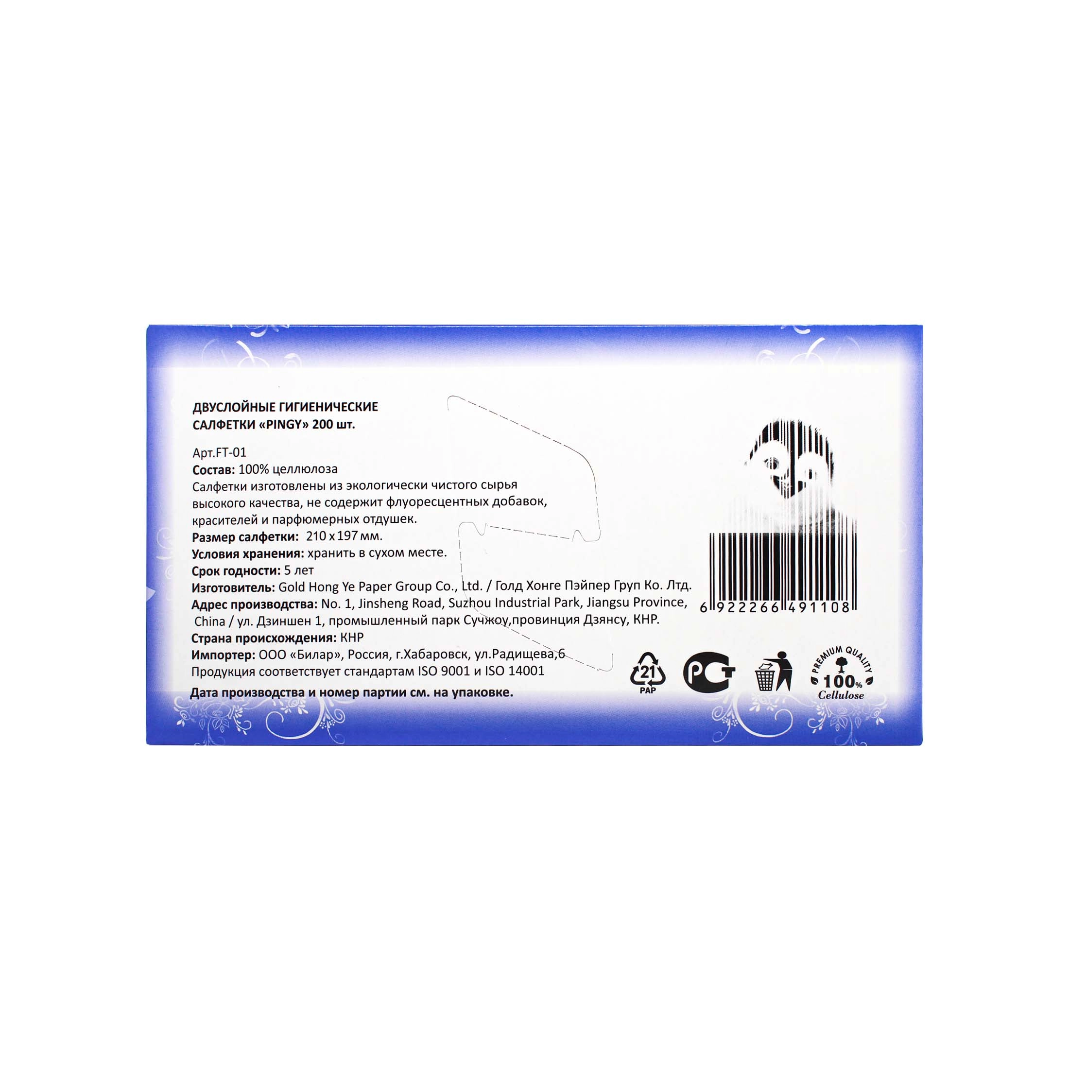 Pingy салфетки бум. д/быта 2-х слойн. белый 1 уп. (200шт) карт./уп / 20шт / NG-200 / 491108