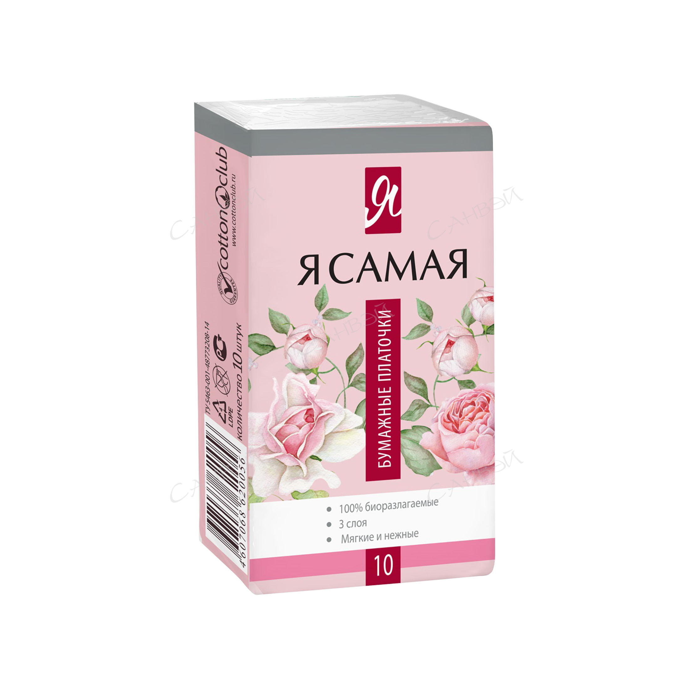 Мягкие и прочные трехслойные бумажные платочки Я Самая изготовлены из 100% целлюлозы и подходят для ухода за нежной кожей лица. Размер платочка: 20х20 см. Не содержат ароматизаторов. 100% биоразлагаемые.