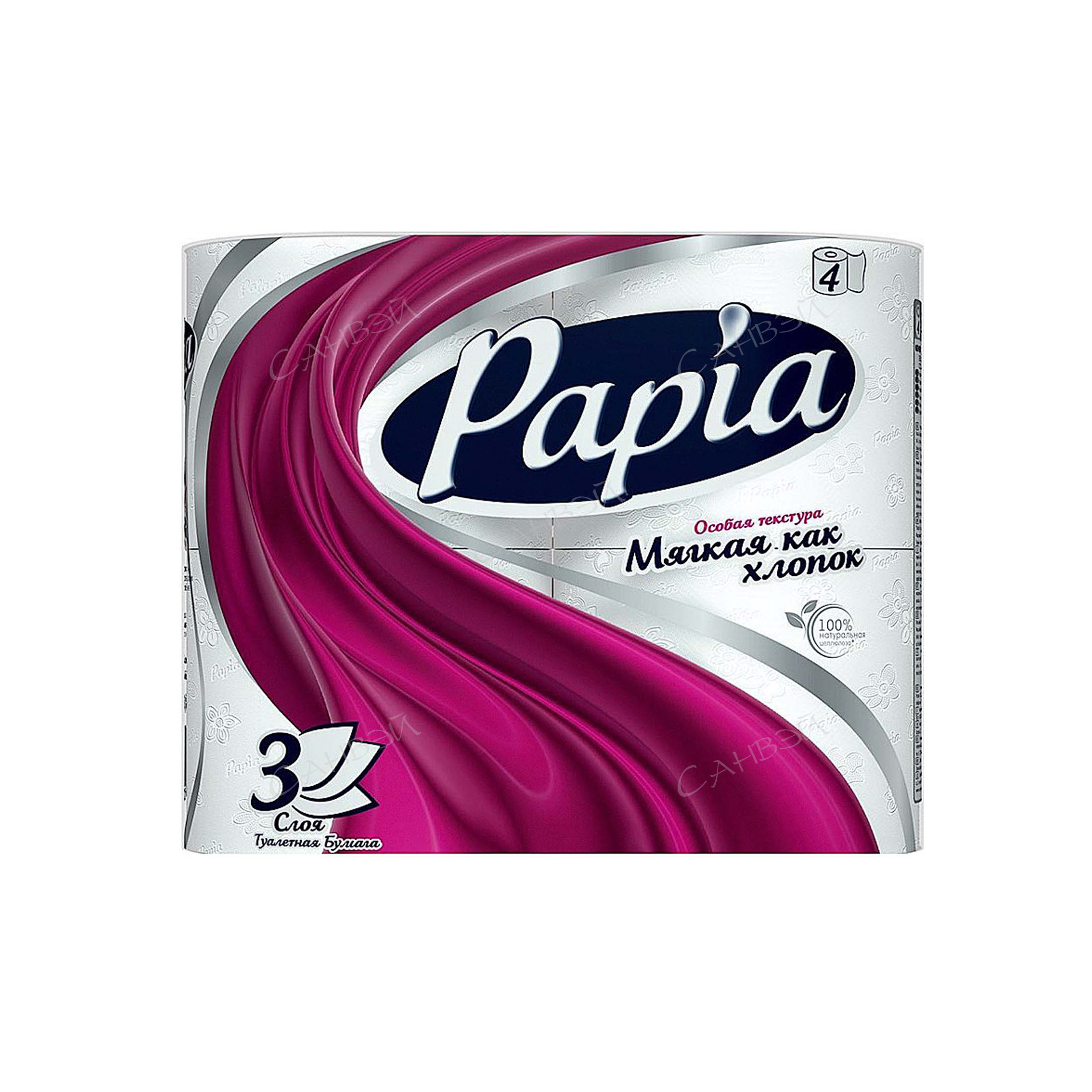 Papia бумага туалетная 3-х слойн. (4шт) белая 1уп. п/э / 14шт / 5036600 / 000013,015337