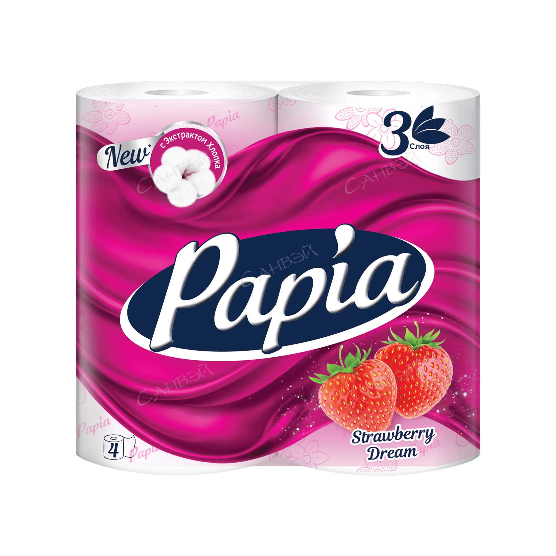 Papia Strawberry Dream бумага туалетная 3-х слойн. (4шт) белая клубника 1уп. п/э / 14шт / 5064992 / 000075,015351