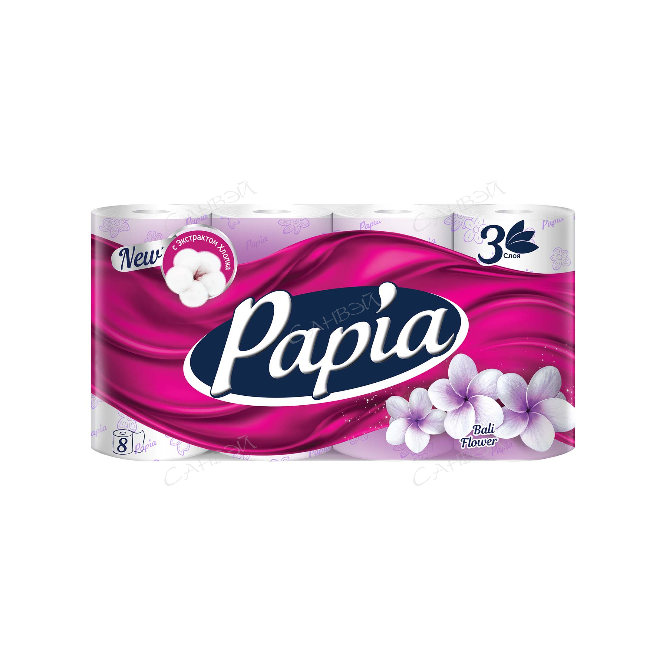 Papia Secret Garden бумага туалетная 3-х слойн. (8шт) бело-розов. цветоч. 1уп. п/э / 7шт / 5058579 / 001249