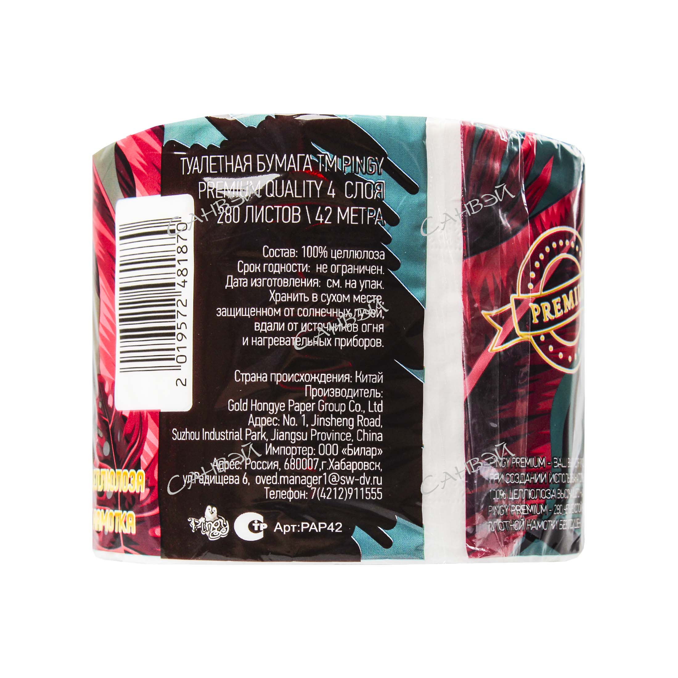 Pingy бумага туалетная 4-х слойн. (на втулке) 42м белая 1рул. п/э / 60шт / PAP42 / 481870