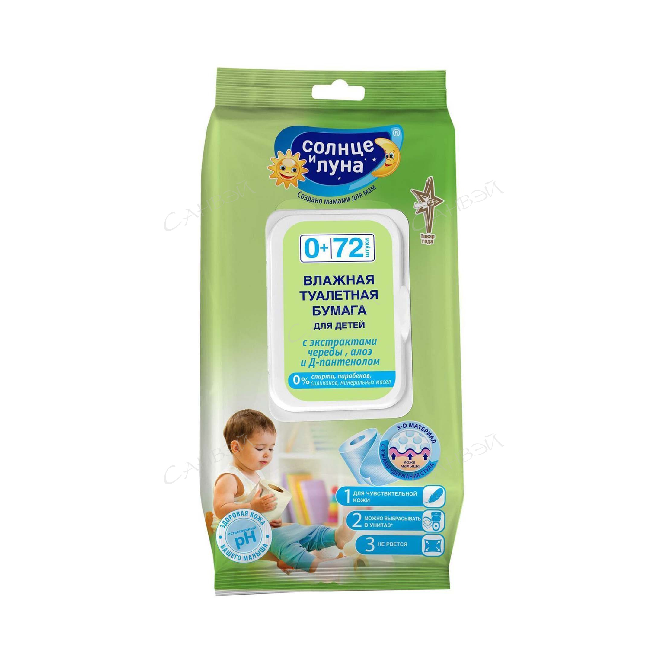 Солнце и Луна бумага туалетная влажная (72шт) белая череда,алоэ детс. 1уп. м/уп с клап. / 12шт / 12851 / 629363
