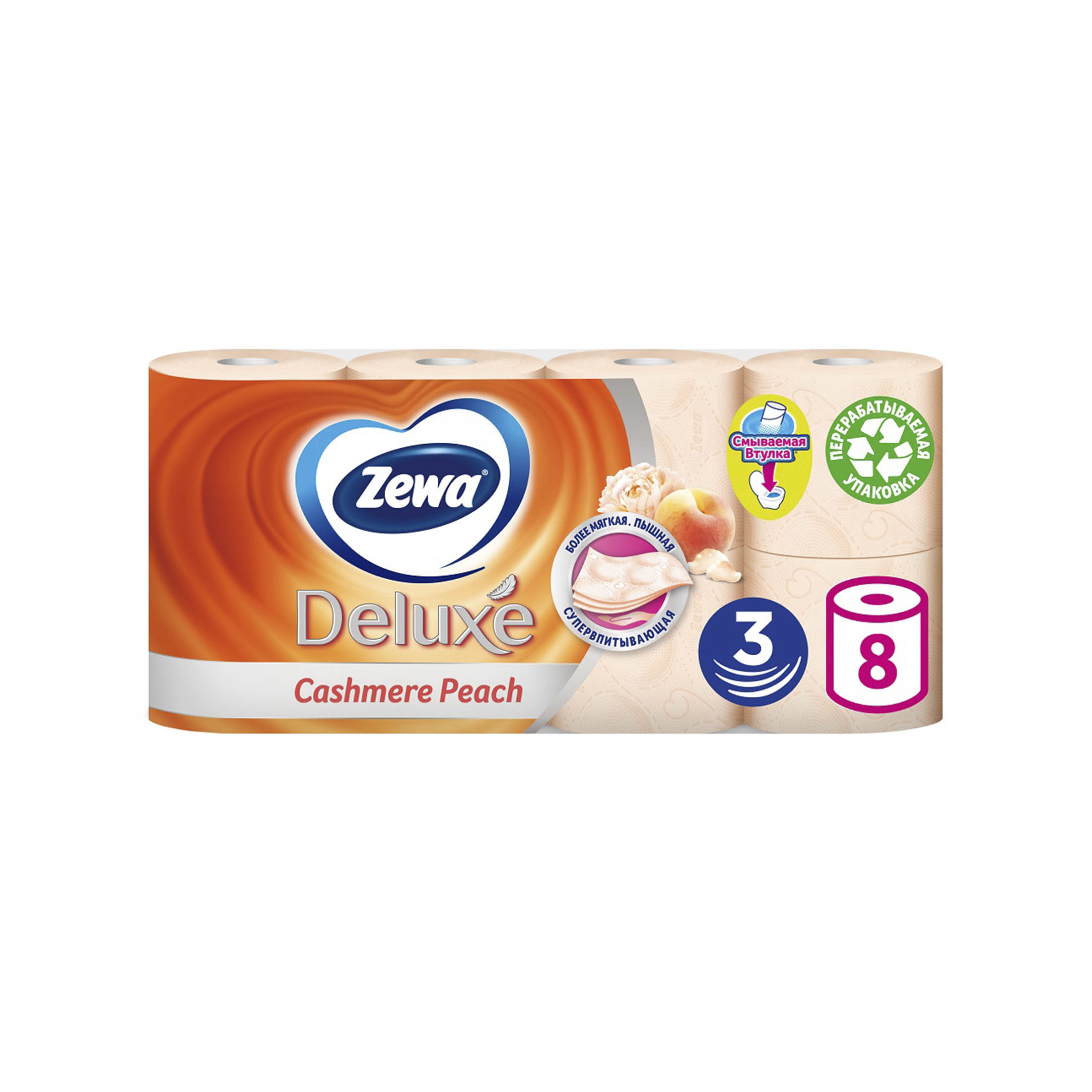 Zewa Delux Cashmere Peach бумага туалетная 3-х слойн. (8шт) оранжев. персик 1уп. п/э / 7шт / 3072 / 035721