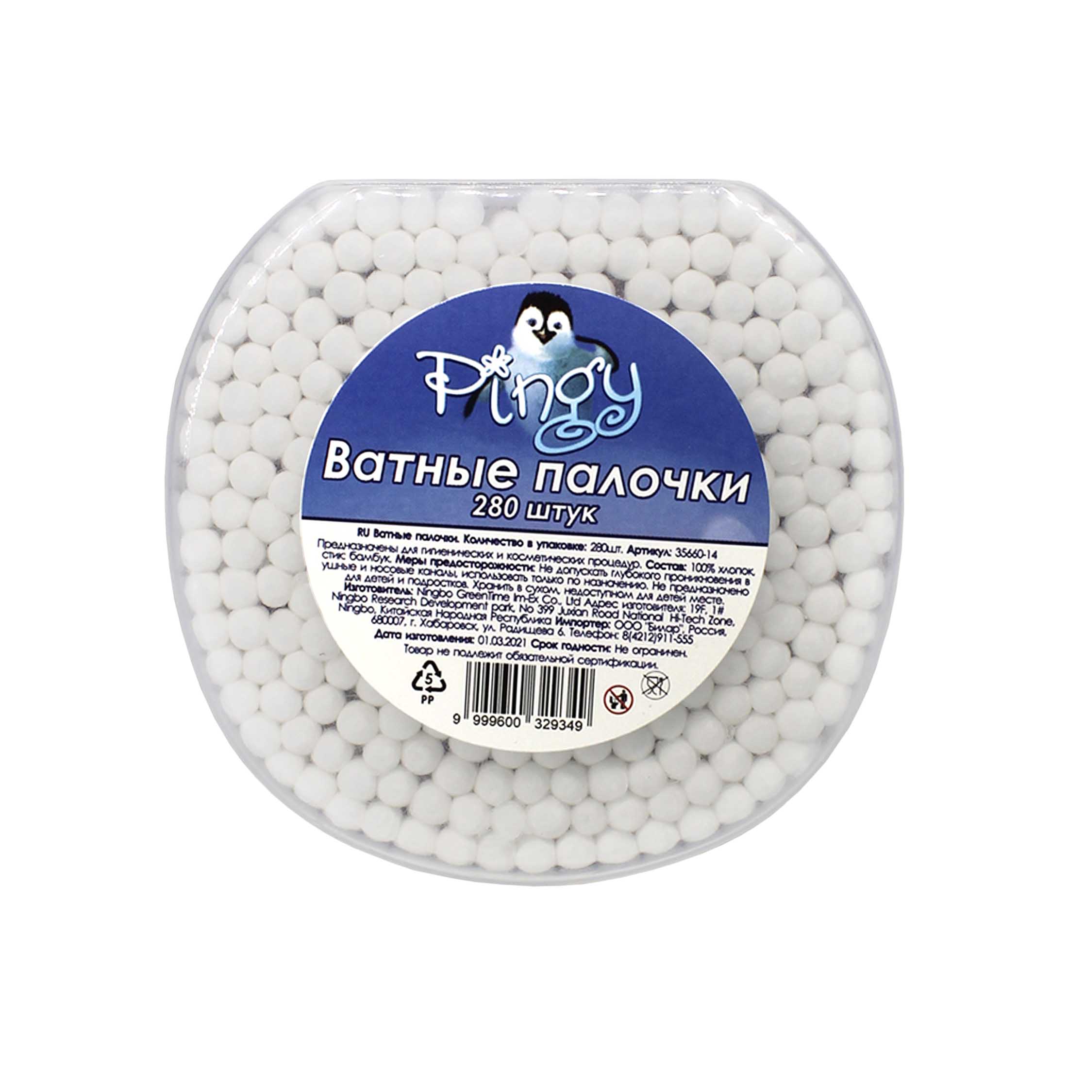 Pingy Ватные палочки 280 шт. изготовлены из прочного экологически чистого бамбука, на который крепко намотан нежный органический хлопок, и он не пушится. Бамбуковые ватные палочки гиппоаллергенны, не содержат синтетических отдушек. Подходят для ежедневного использования в косметических целях, выполнения гигиенических процедур, ухода за детьми, а также животными. В удобном пластиковом футляре (высота 8 см, диаметр 9 см).