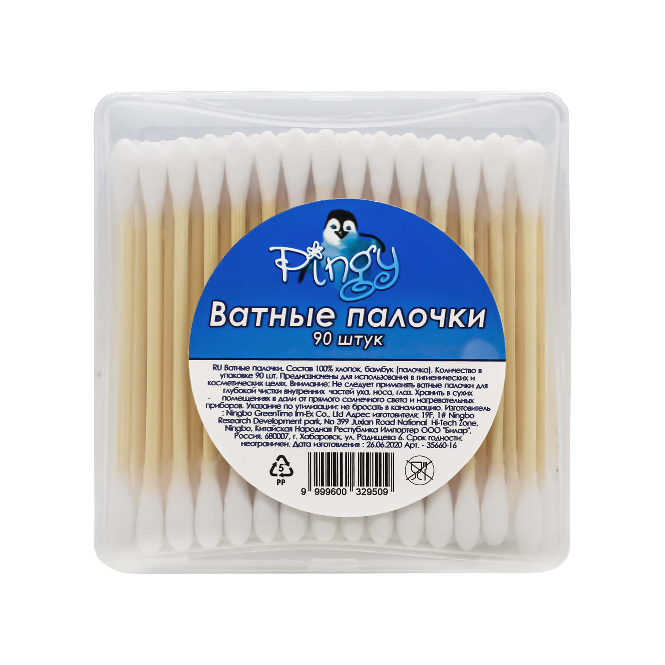 Pingy Ватные палочки 90 шт. изготовлены из прочного экологически чистого бамбука, на который крепко намотан нежный органический хлопок, и он не пушится. Бамбуковые ватные палочки гиппоаллергенны, не содержат синтетических отдушек. Подходят для ежедневного использования в косметических целях, выполнения гигиенических процедур, ухода за детьми, а также животными. В удобной пластиковой коробочке (размер 8х8 см).