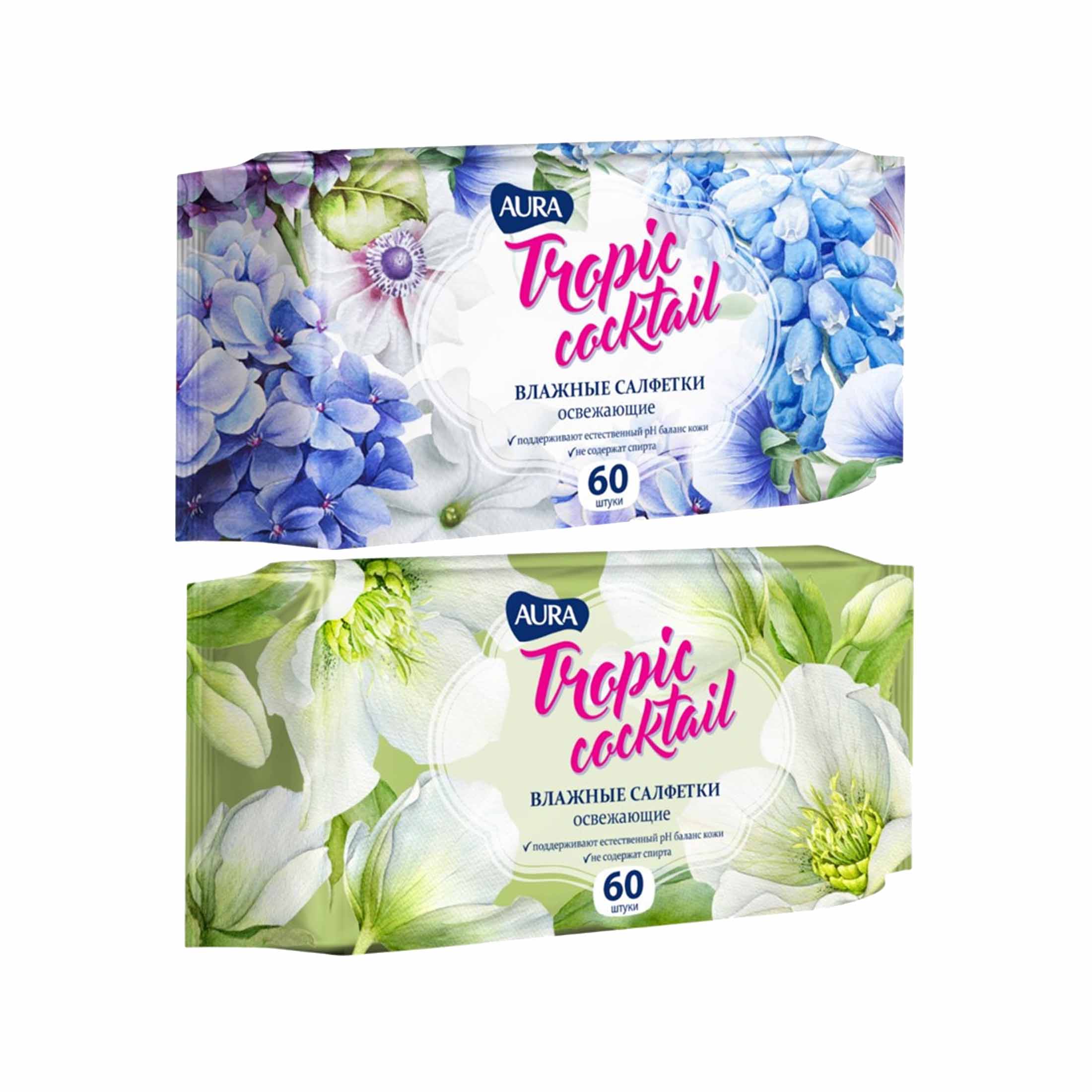 Aura Tropical Coctail салфетки влаж. освежающие м/уп 1 уп. (60шт) / 24шт / 8134 / 006968