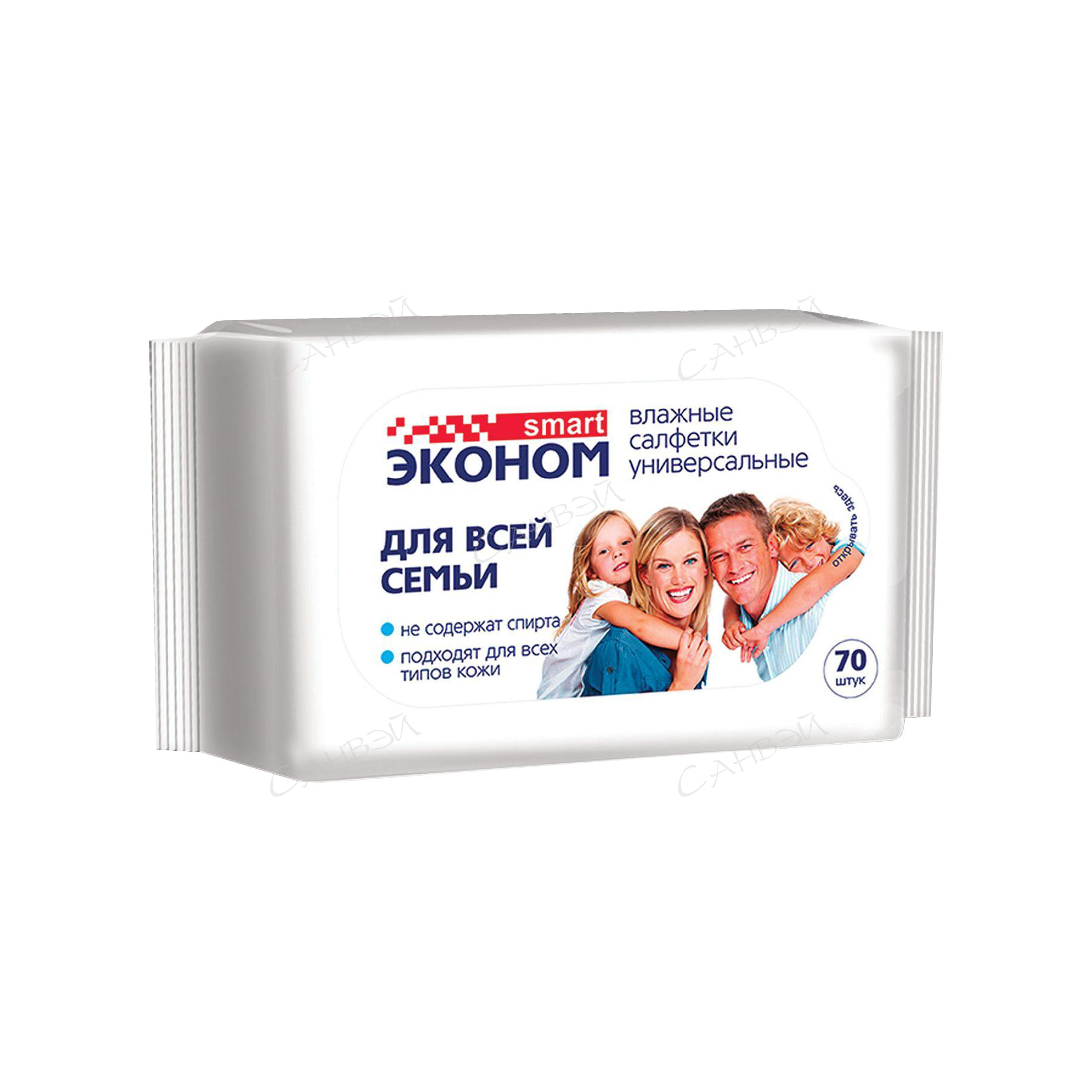 Эконом Smart Влажные салфетки Универсальные 70 шт эффективно и бережно очищают кожу рук, оставляя длительное ощущение свежести и комфорта, где бы вы ни были дома, на прогулке, в гостях. Продукт клинически протестирован. Не содержит спирта. В упаковке 15 шт.