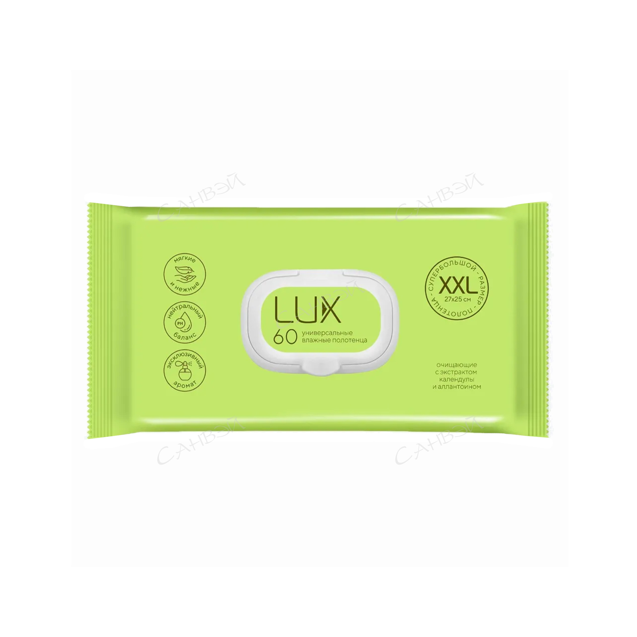 Lux полотенце влажное универс. (60шт) очищ. д/в т.кожи аллантоин календула м/уп.клап. / 12шт / 80971 / 809719