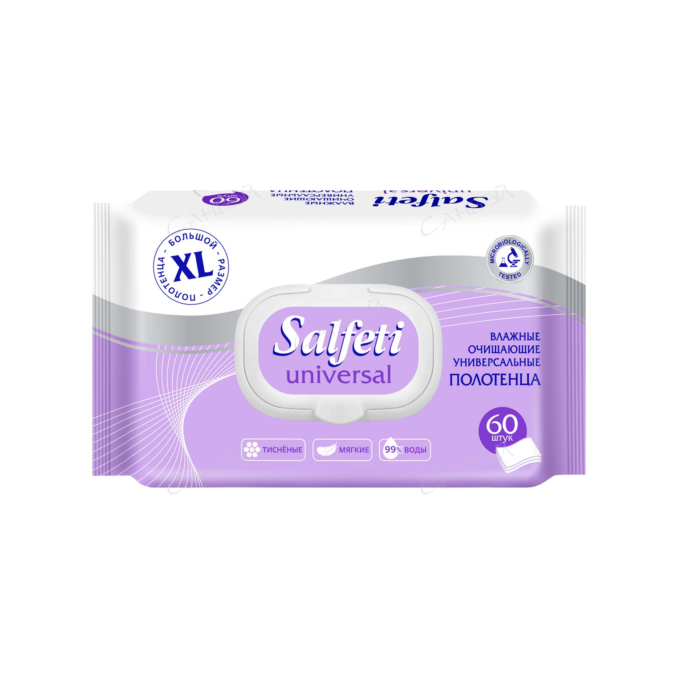 Salfeti Влажные полотенца Universal 60 шт удобны в использовании и подходят для всей семьи. Использовать в различных местах, при первой необходимости и если нет возможности провести полноценный уход.