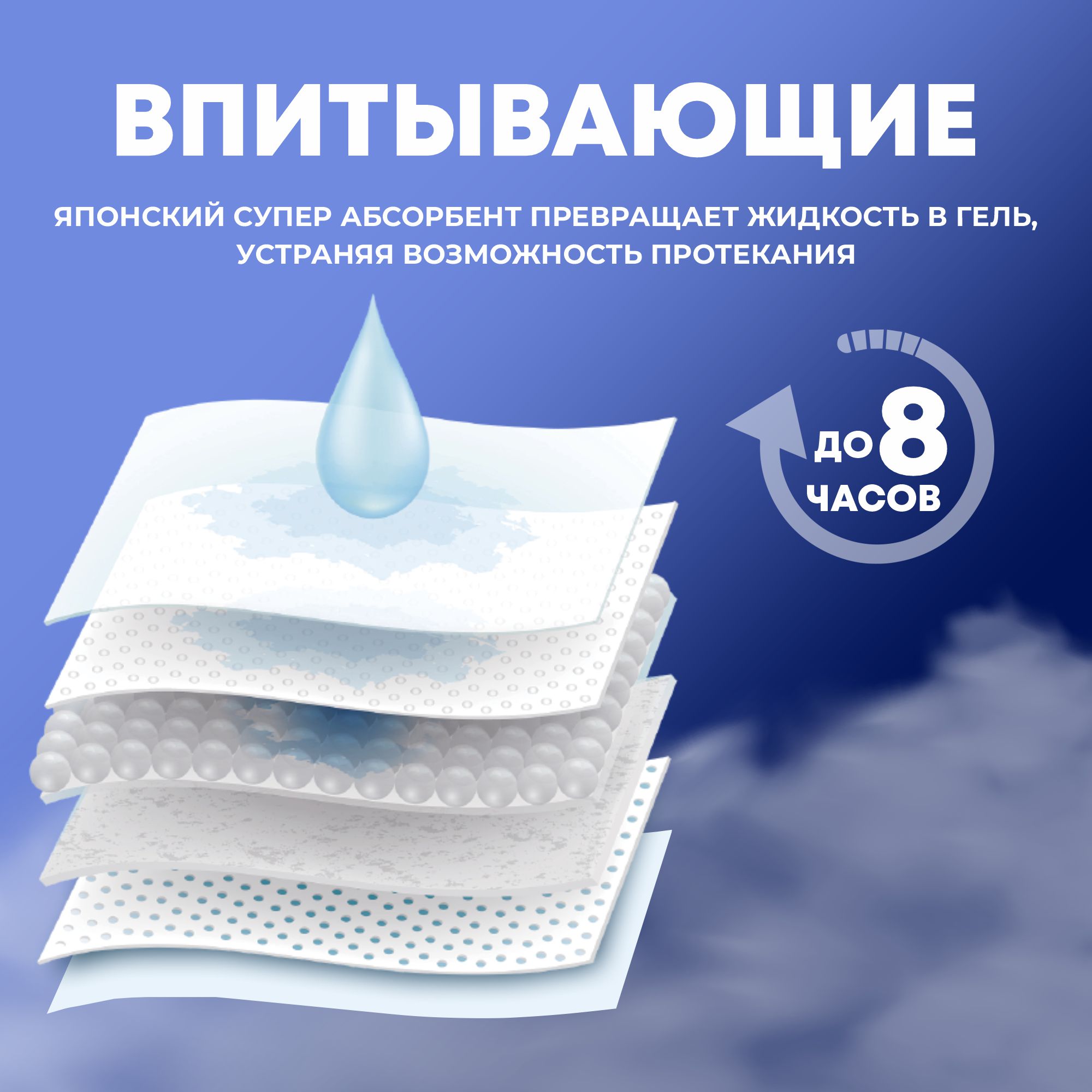 - В состав прокладки входит японский супер абсорбент, он превращает жидкость в гель, устраняя возможность протекания, оставляя ощущение сухости и комфорта.