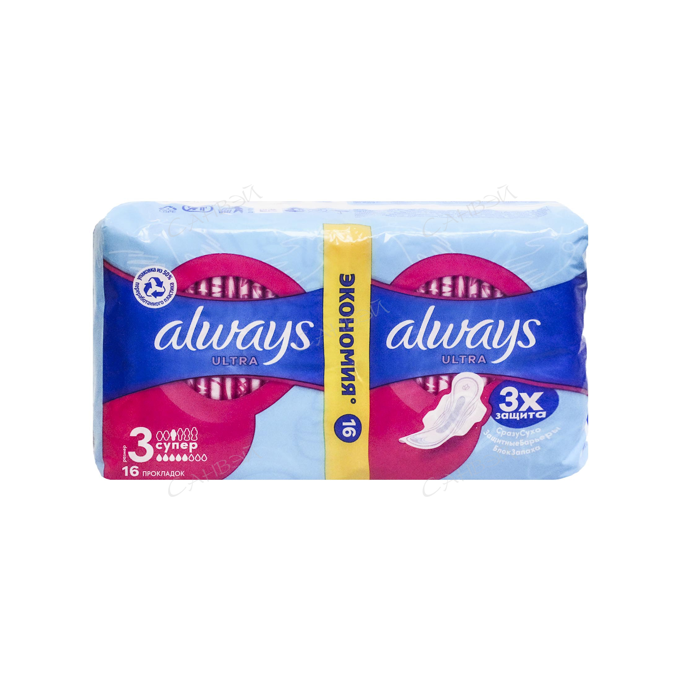 Always Ultra Super Plus прокладки гигиенические (16шт) с крылышк. ароматиз. м/уп 1 уп. / 10шт / 83715790 / 041801,041795