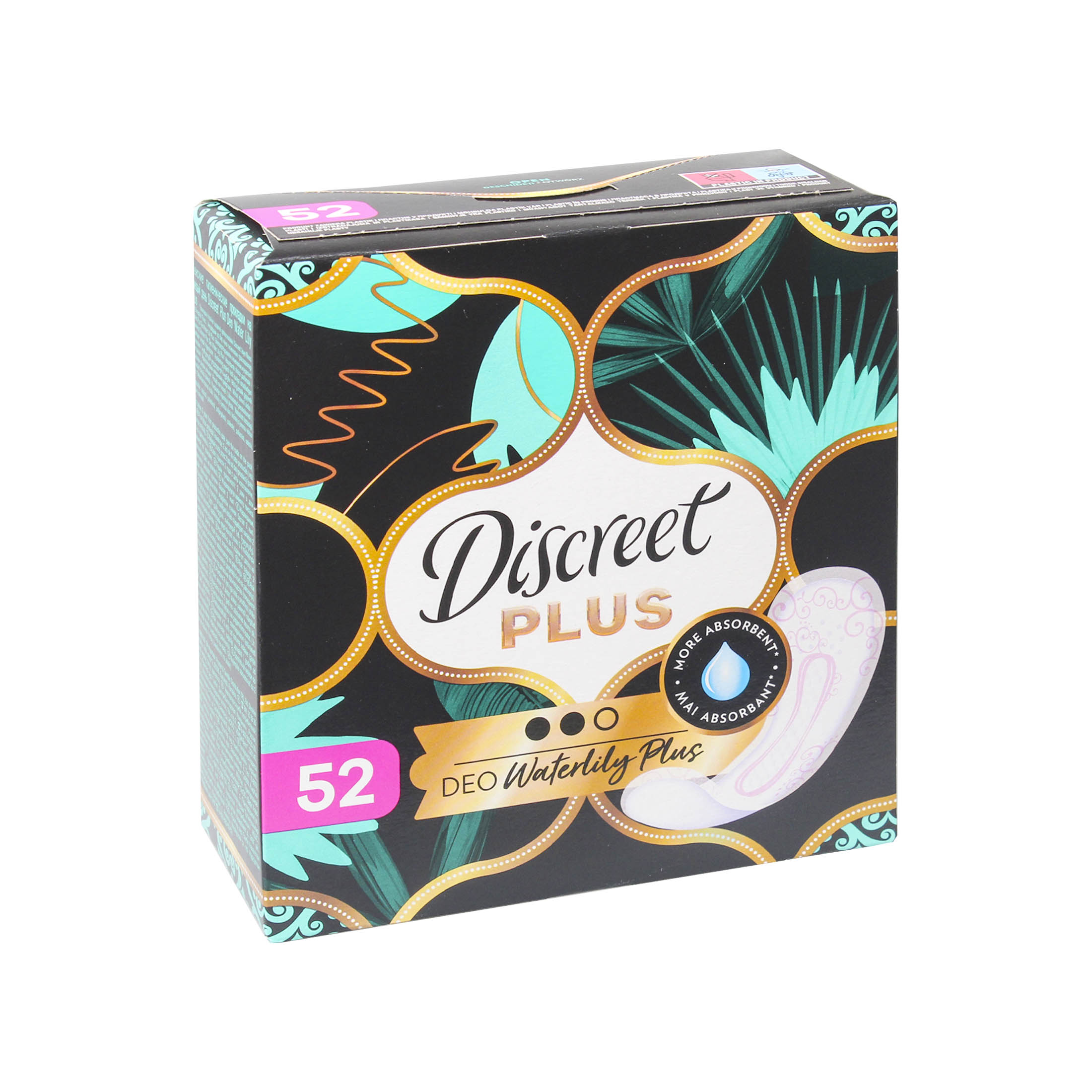 Ультратонкие ежедневные гигиенические прокладки Discreet Deo Water Lily Plus 52 шт дарят защиту и при этом почти не чувствуются. Инновационная технология эффективно впитывает влагу и удерживает её, придавая ощущение чистоты и свежести в течение всего дня. Эти ежедневные прокладки с фирменным ароматом водной лилии подарят вам ощущение свежести и уверенности на целый день!