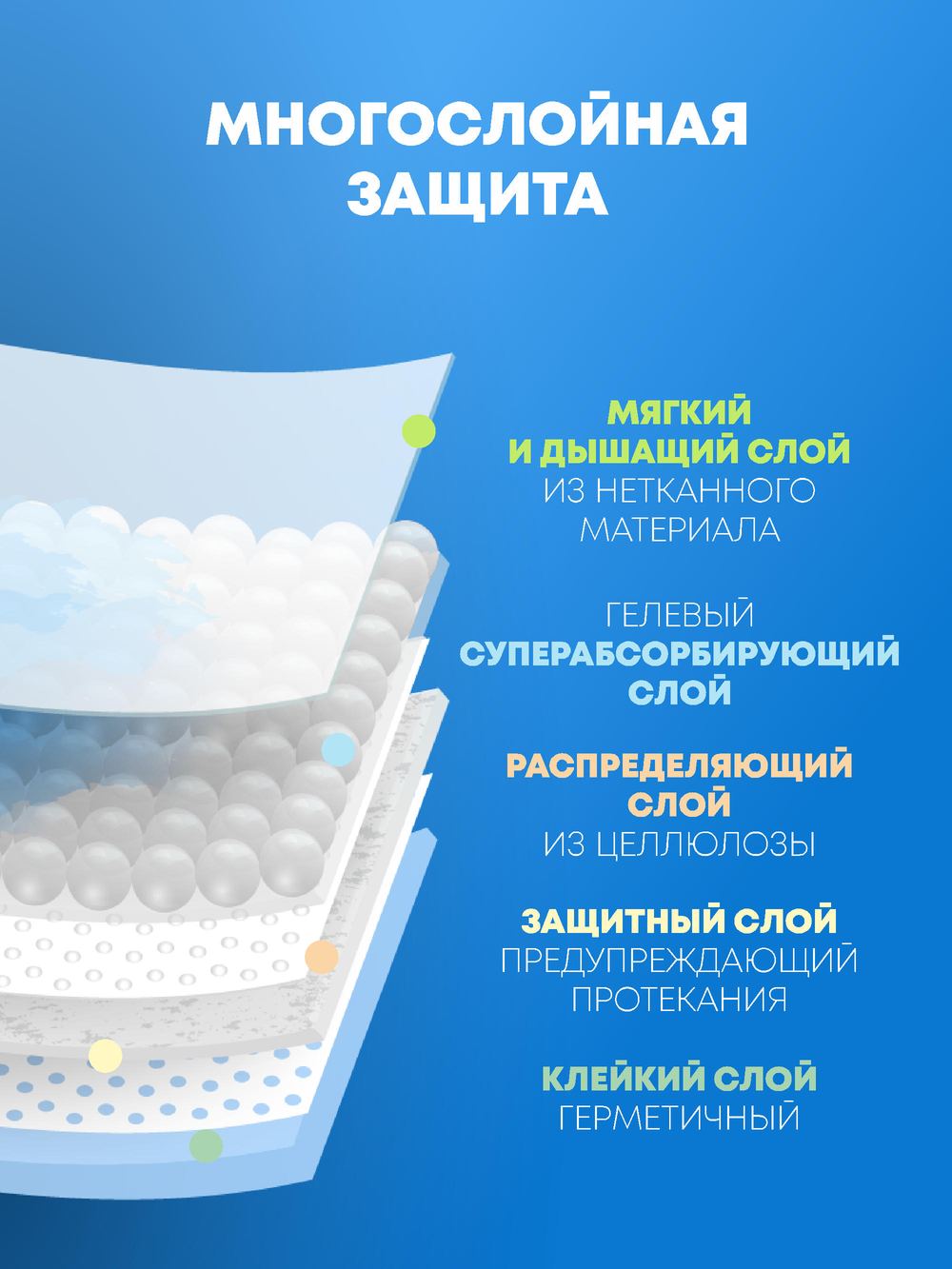 - Впитывающий слой состоит из гелевого супер абсорбента создан в коллаборации японских и американских учёных. Он быстро впитывает и надежно удерживает влагу.