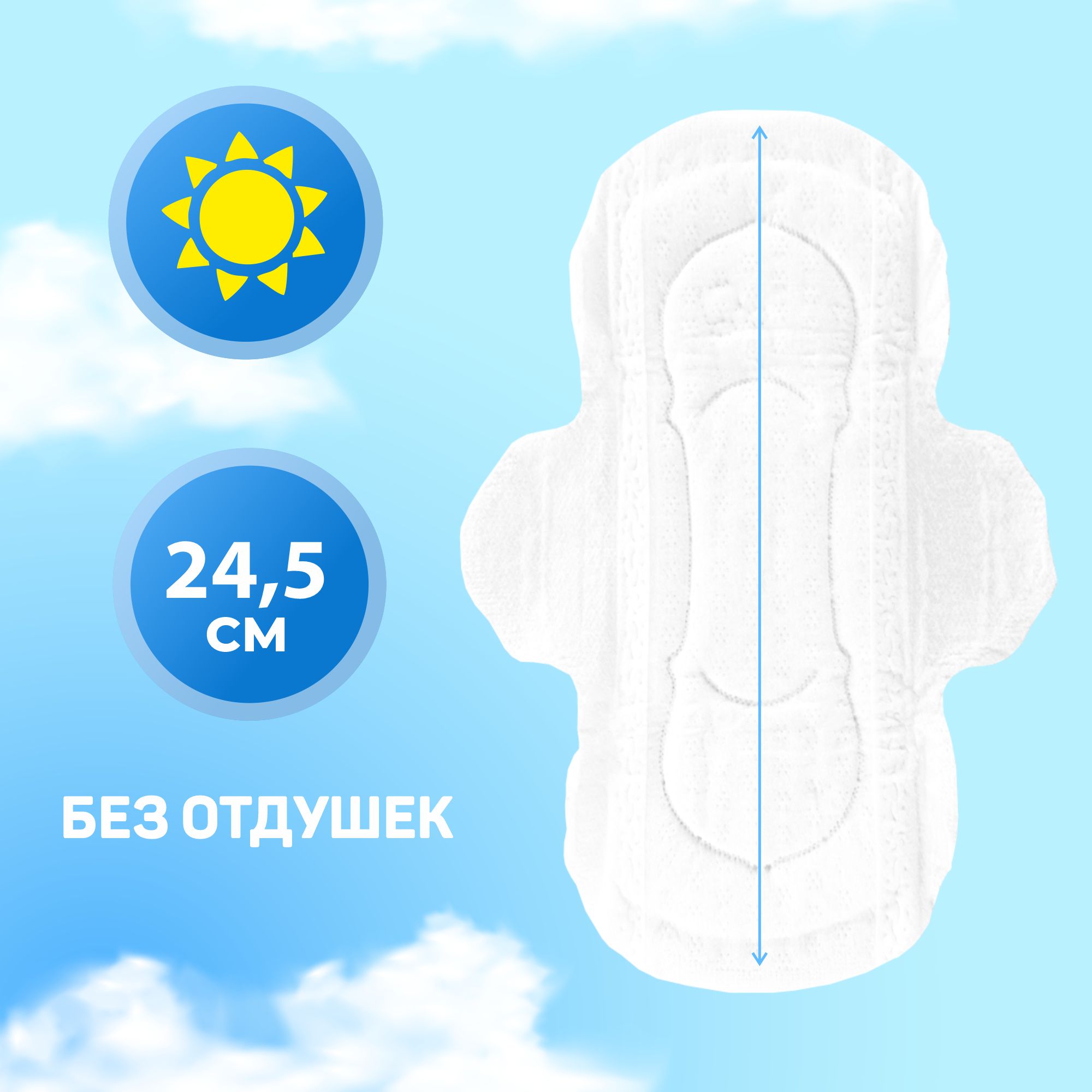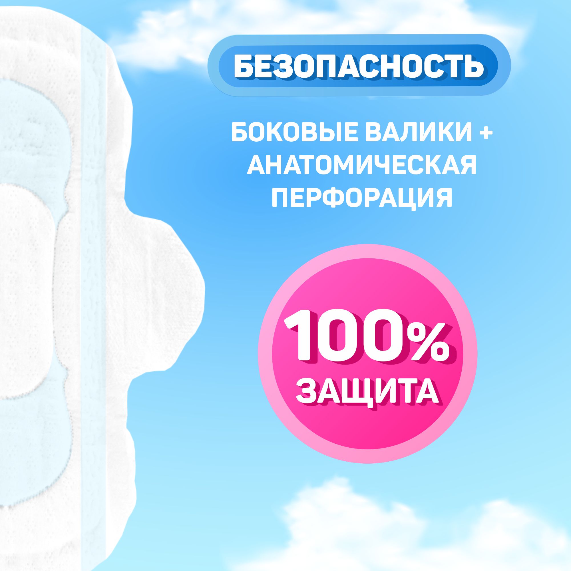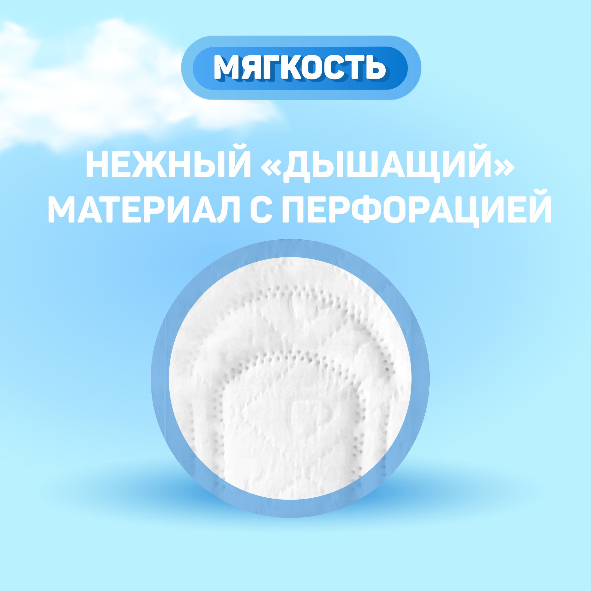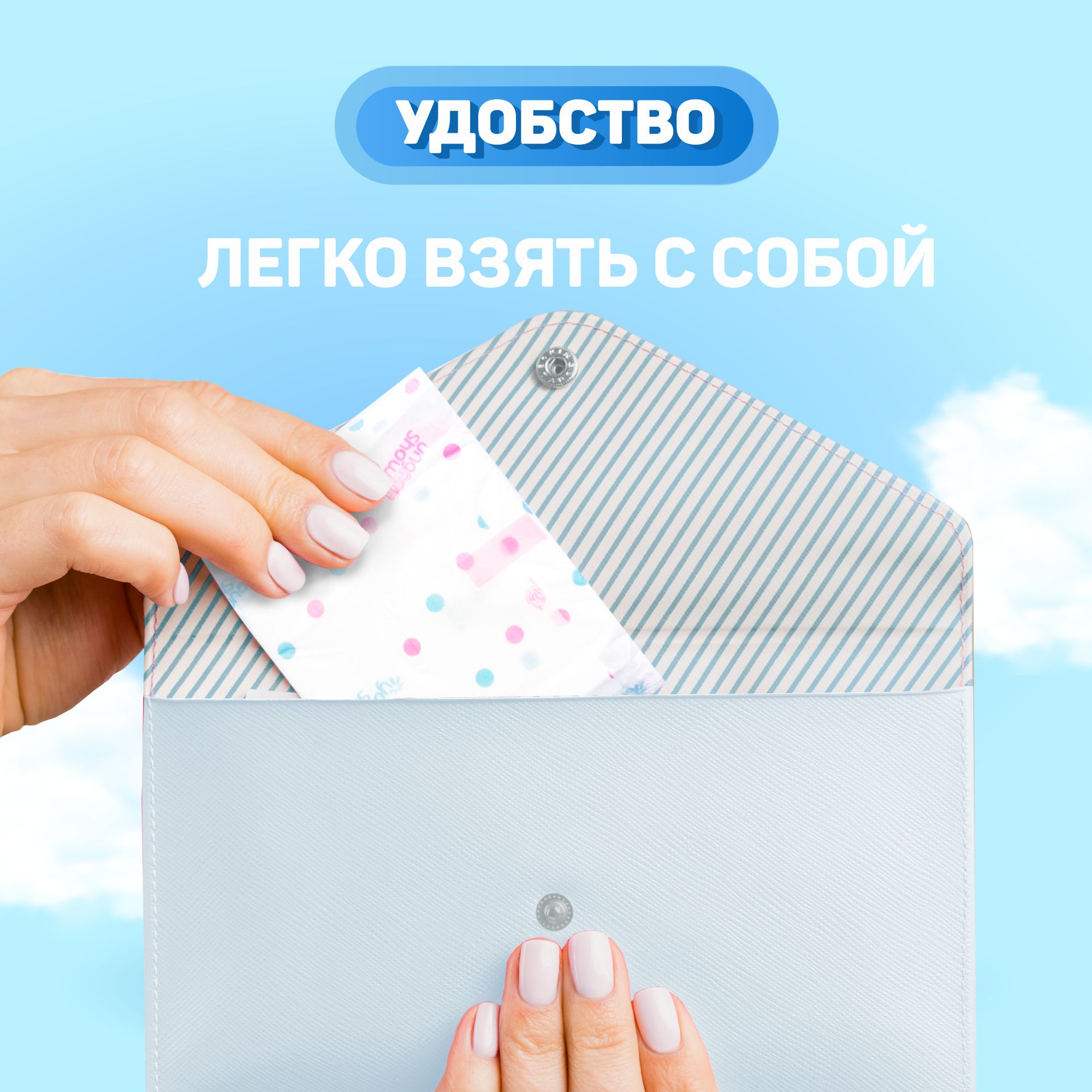 Прокладка имеет анатомическую форму и отлично справляется со своей основной задачей: быстро и полностью впитывает влагу, не допускает протеканий. Жидкость быстро впитывается, а мягкая дышащая поверхность остается сухой и комфортной для тела.
