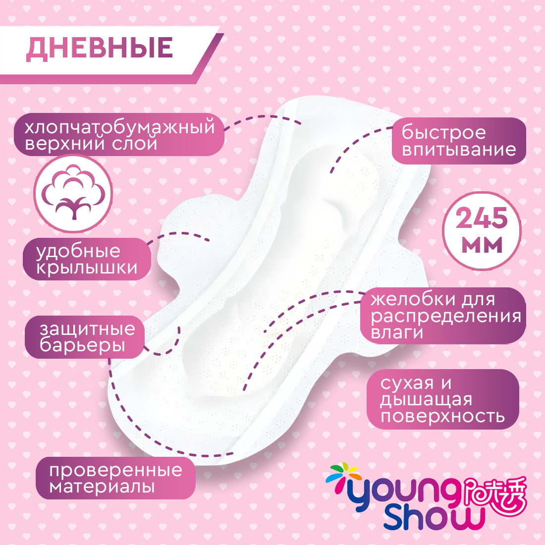 Young Show Прокладки гигиенические USA Time 245 мм 20 шт – это простые надежные прокладки для критических дней, подходящие под разные потребности: дневные, ночные и ночные удлиненные.