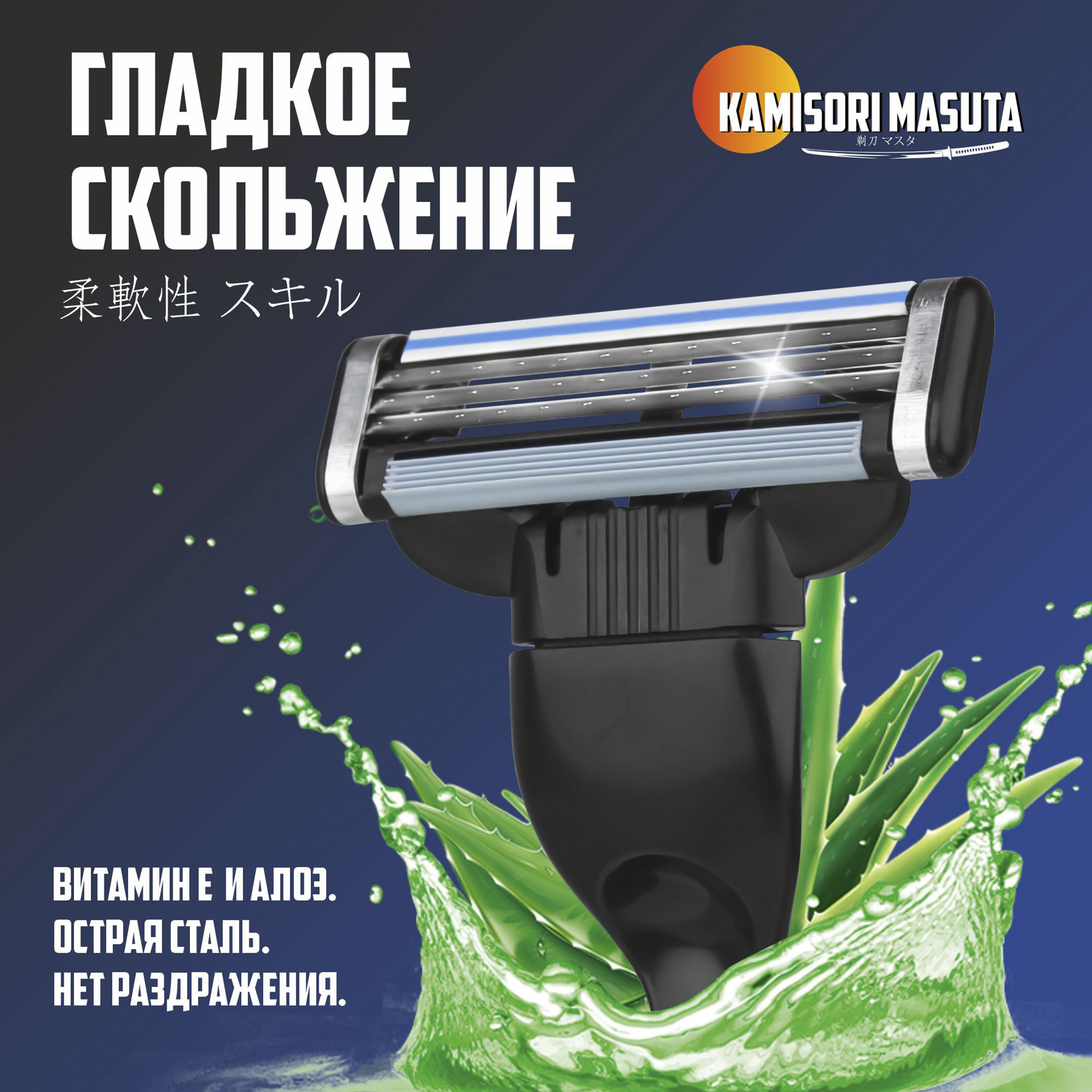 Kamisori Masuta Бритвенный станок многоразовый + Сменные кассеты для бритья 3 лезвия 2 шт