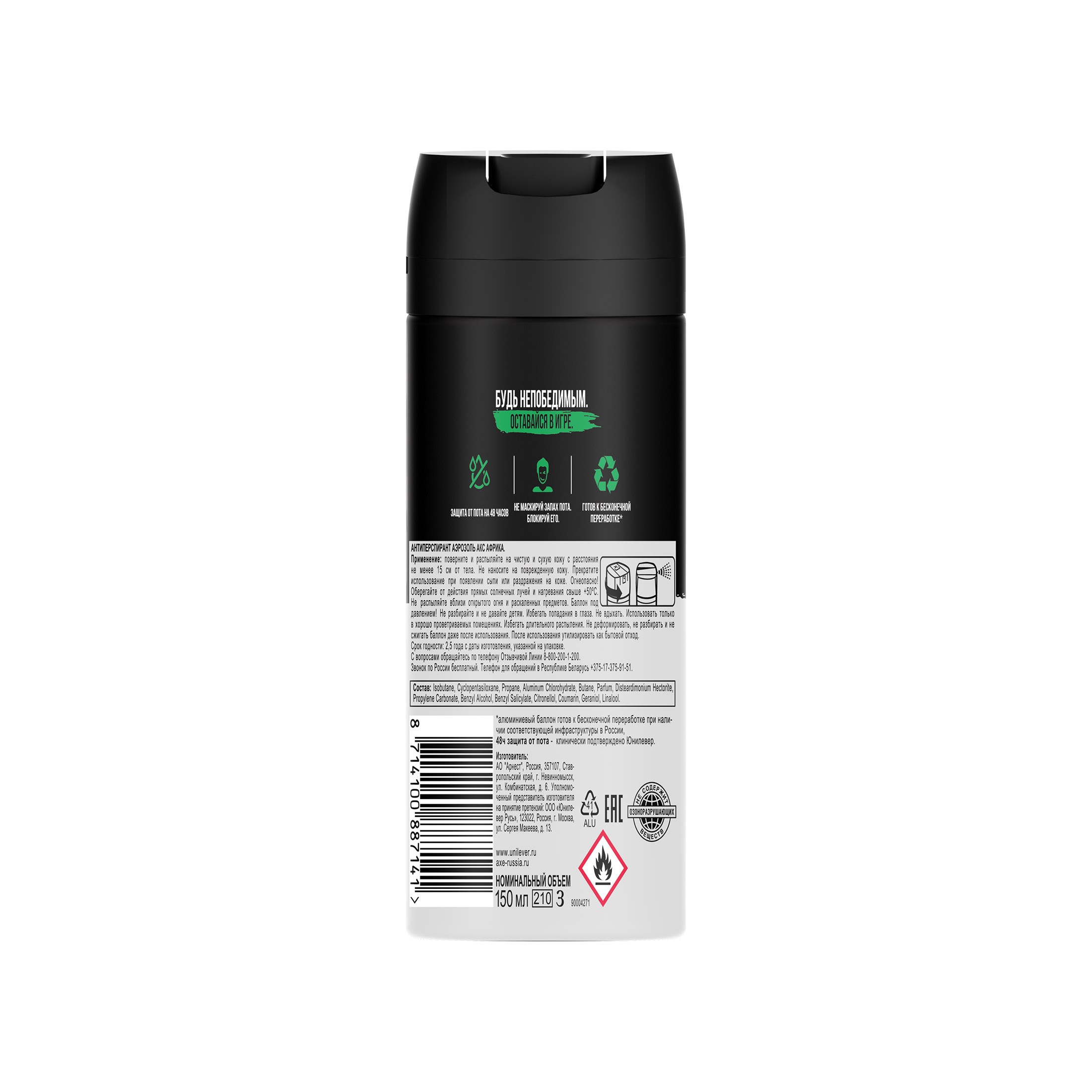 Axe Africa Rock дезодорант антипер. 150 мл муж защ.48ч д/в.т.кожи мандарин, сандал аэроз. / 6шт / 68925355 / 887141