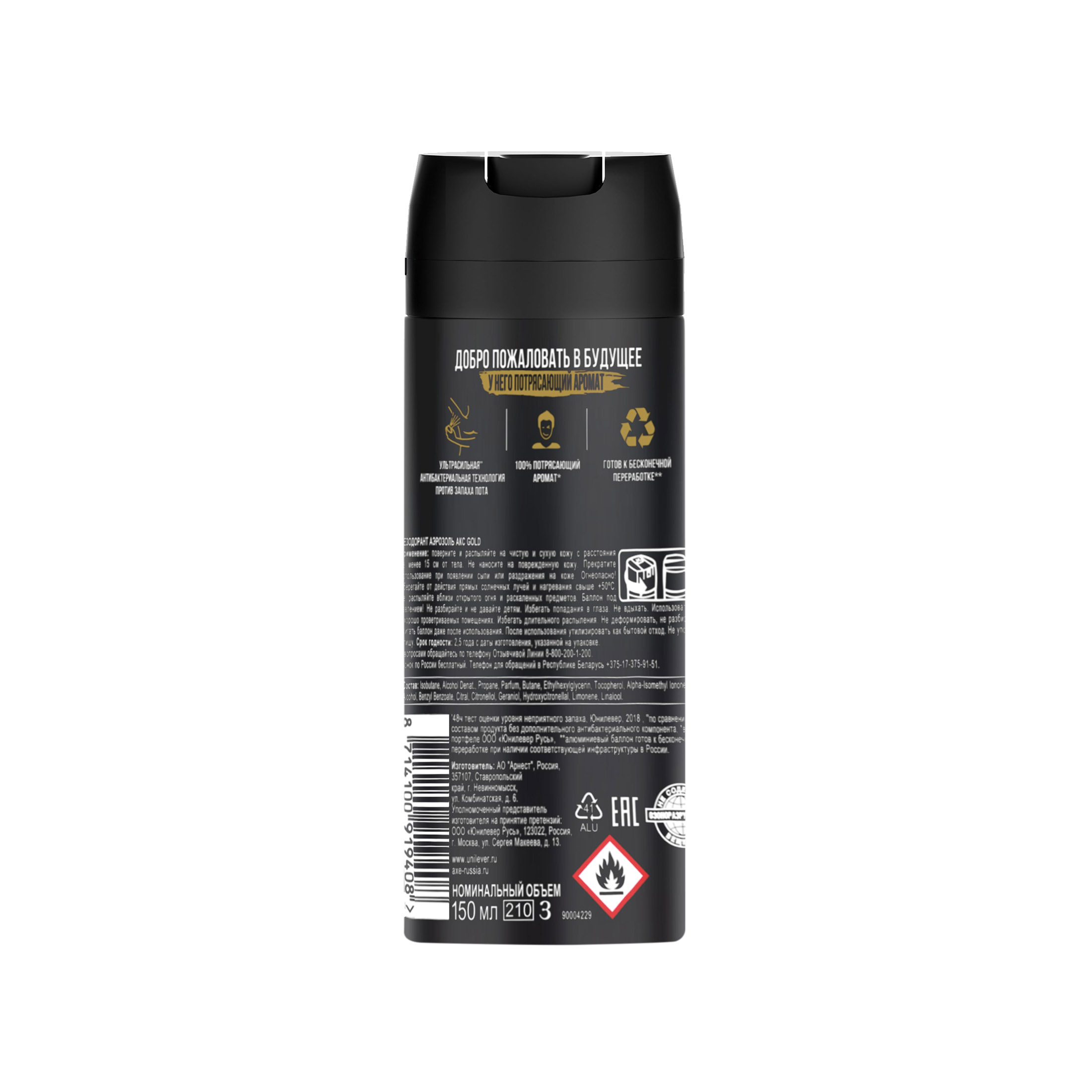 Axe Голд дезодорант 150 мл муж защ.48ч нон-стоп д/в т.кожи агаров.дерев.,чер.ваниль аэроз. / 6шт / 69623491 / 919408